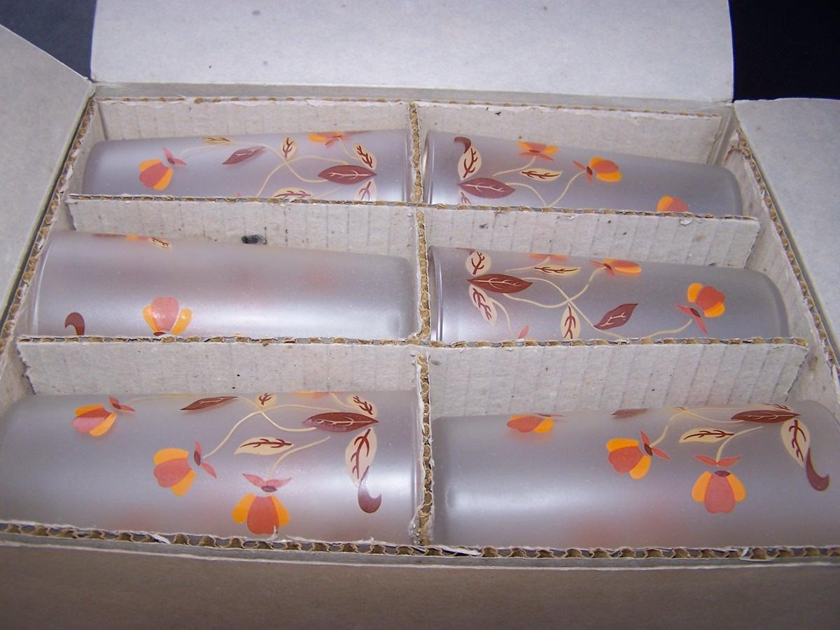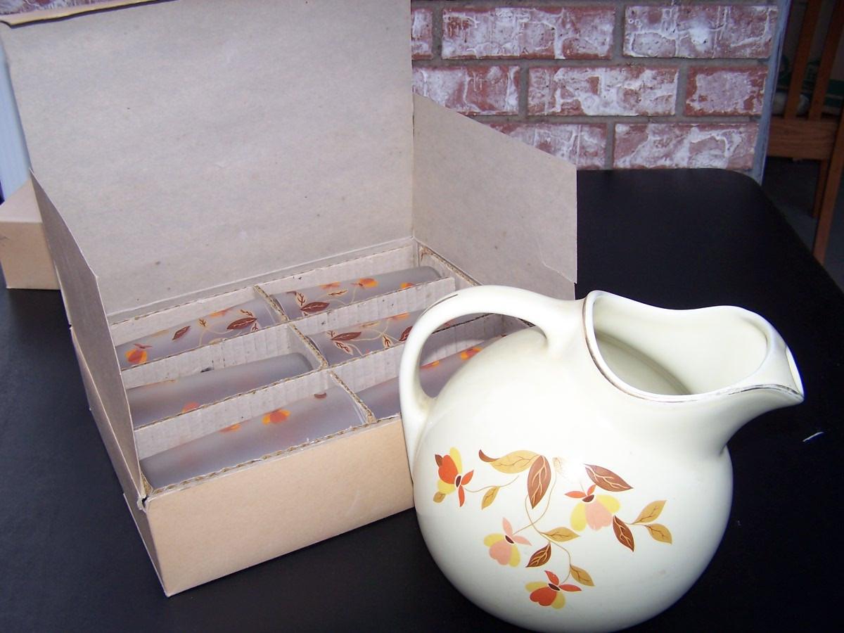 THIS IS SOME WONDERFUL VINTAGE JEWEL TEA PITCHER & GLASSWARE in BOX.... VERY SLIGHT WEAR TO THE GLASSES, PITCHER HAS SOME LIGHT WEAR....