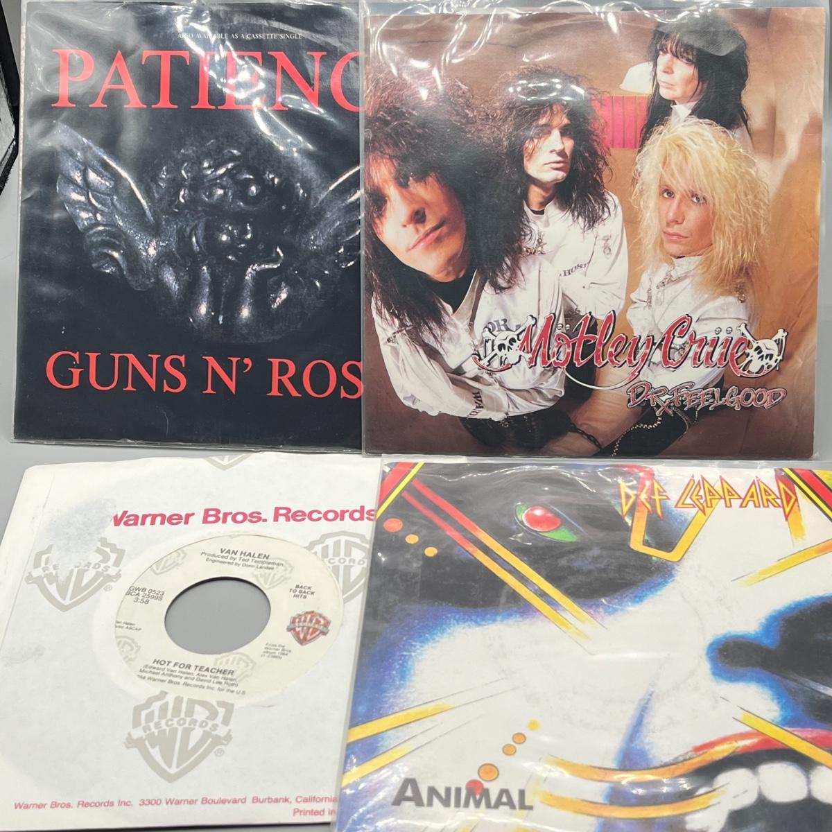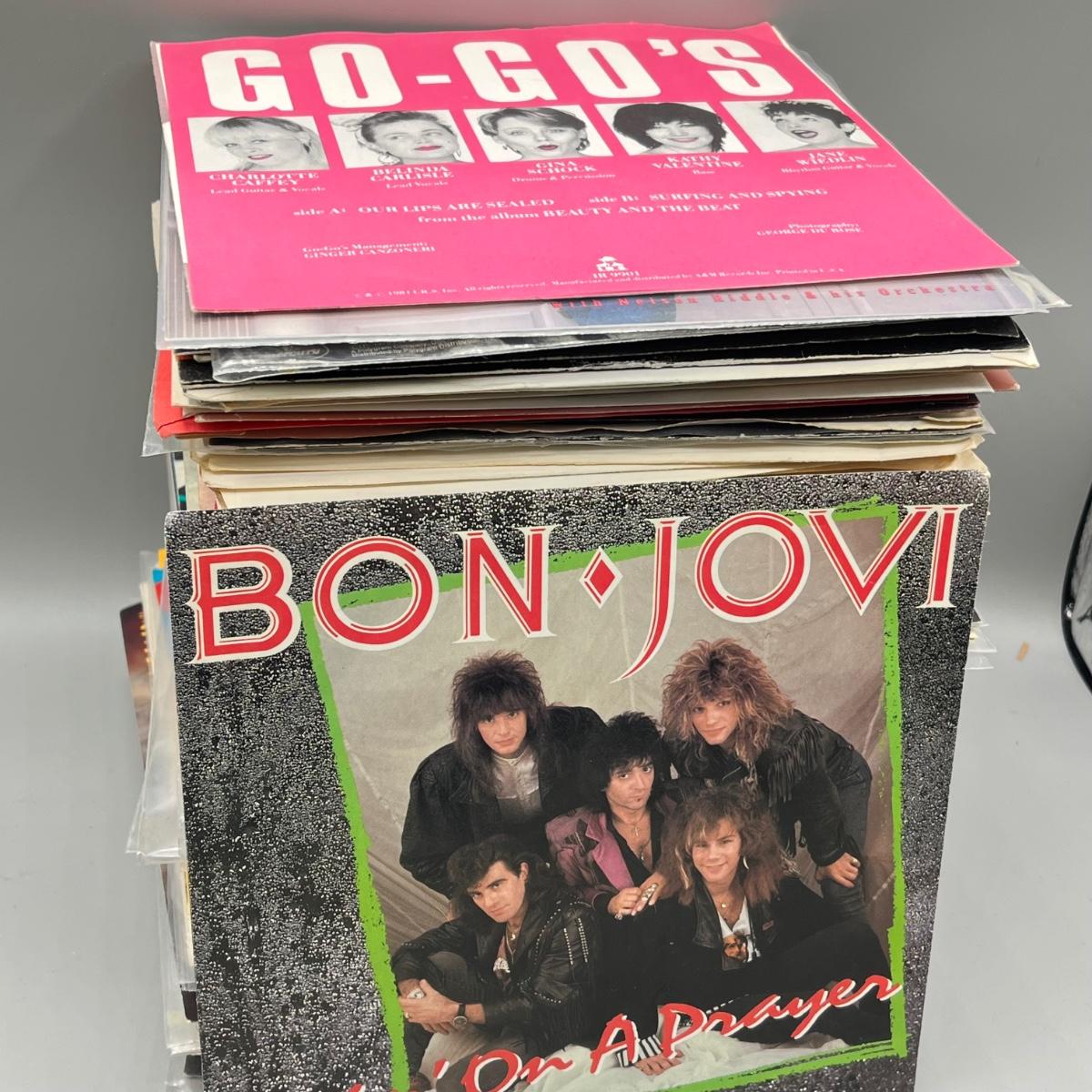 LOT 187B: Stack of 45s Vinyl (Dozens of Records) - Bon Jovi, Van Halen, Motley Crue, Guns N' Roses and Much More