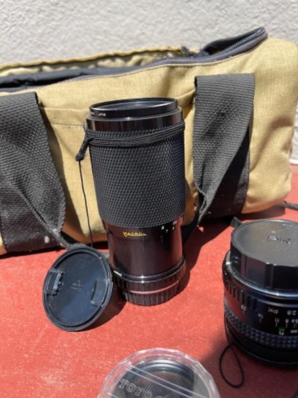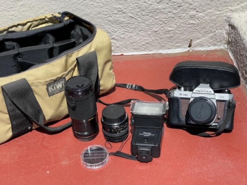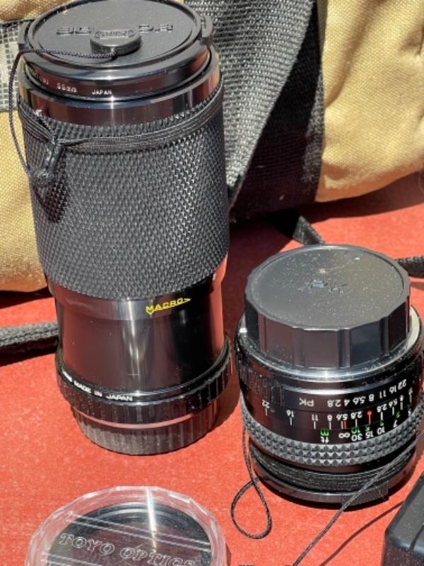 Lot 187G. Manuel Pentax camera, zoom lens, flash, two lens covers--$85