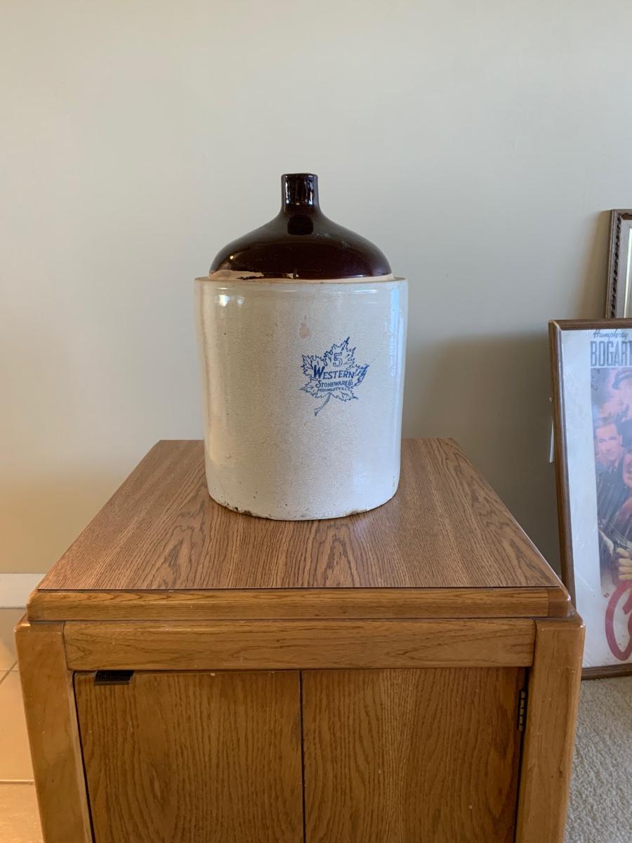 Lot 187R: Vintage Western Stoneware Ring Handle Jug