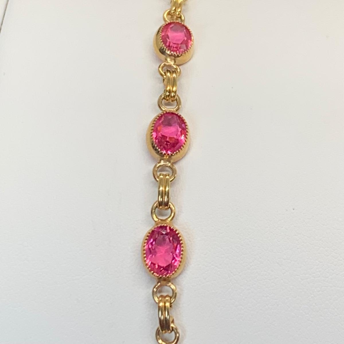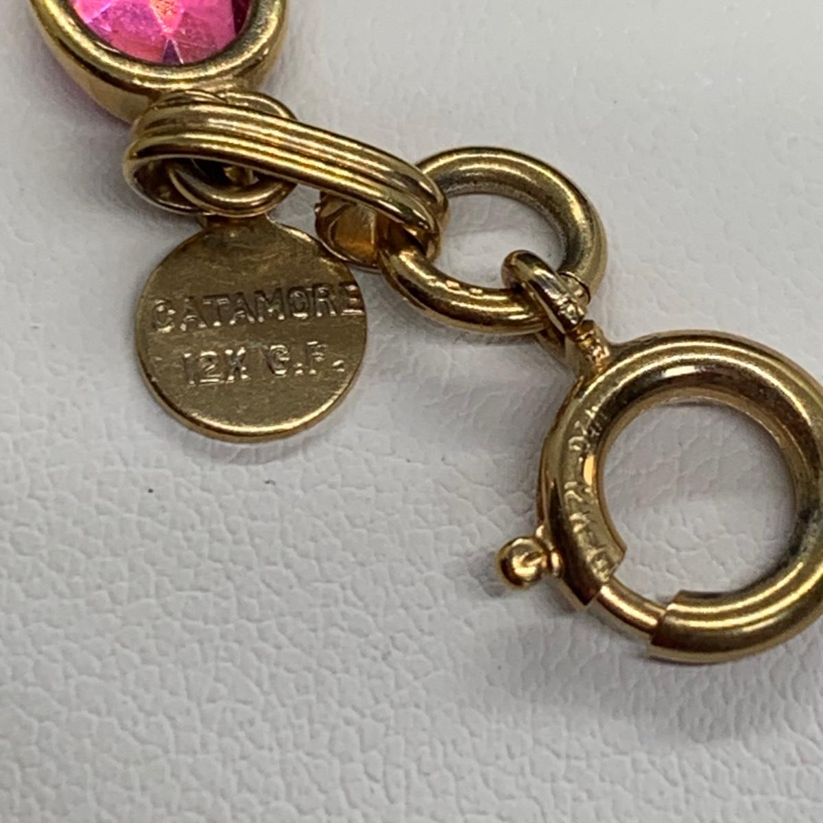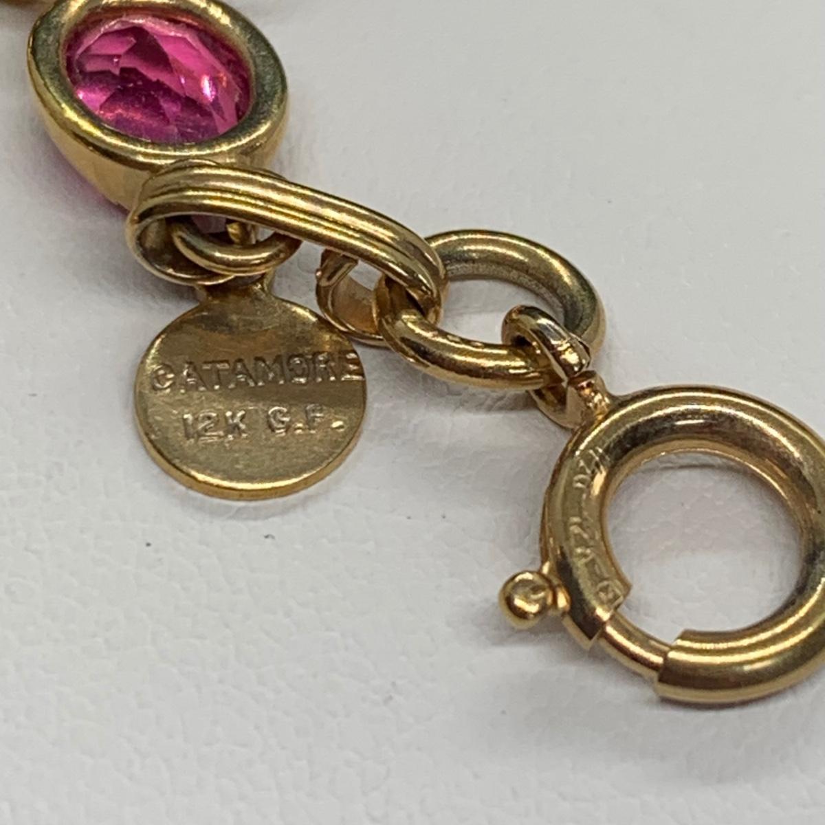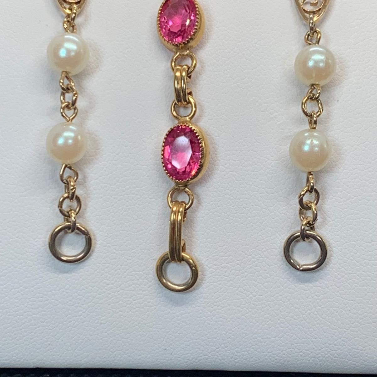 Lot 188: Lenox Gold Vermeil Pendant w/16" Gold Fill Chain, Catamore 12K Gold Fill Pink Crystal Bracelet 7", Pearl Bracelets 1/20 12K Gold Fill 7" and Wells 14K Gold Fill Brooch