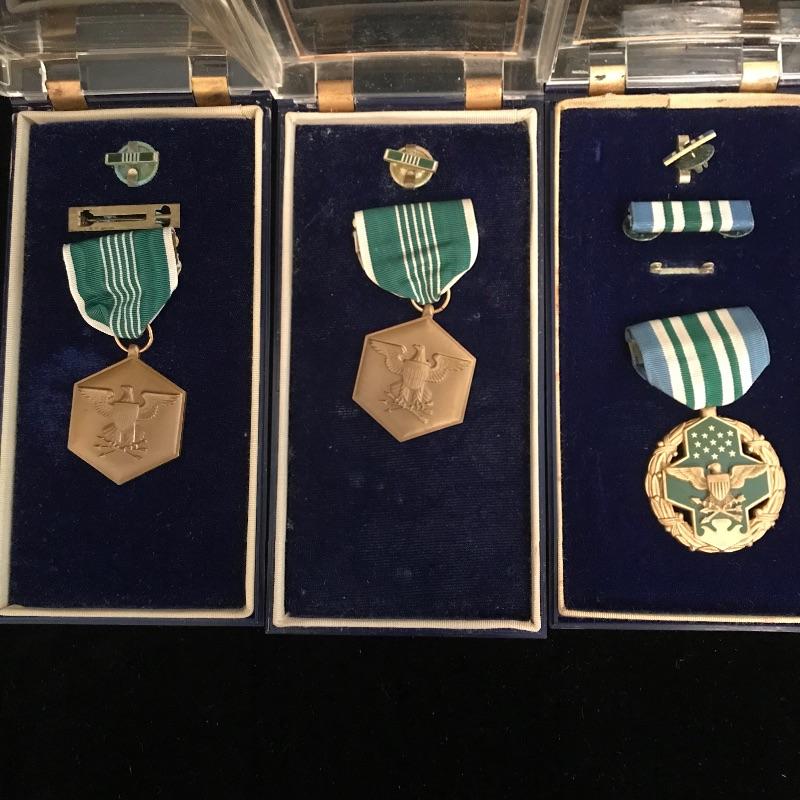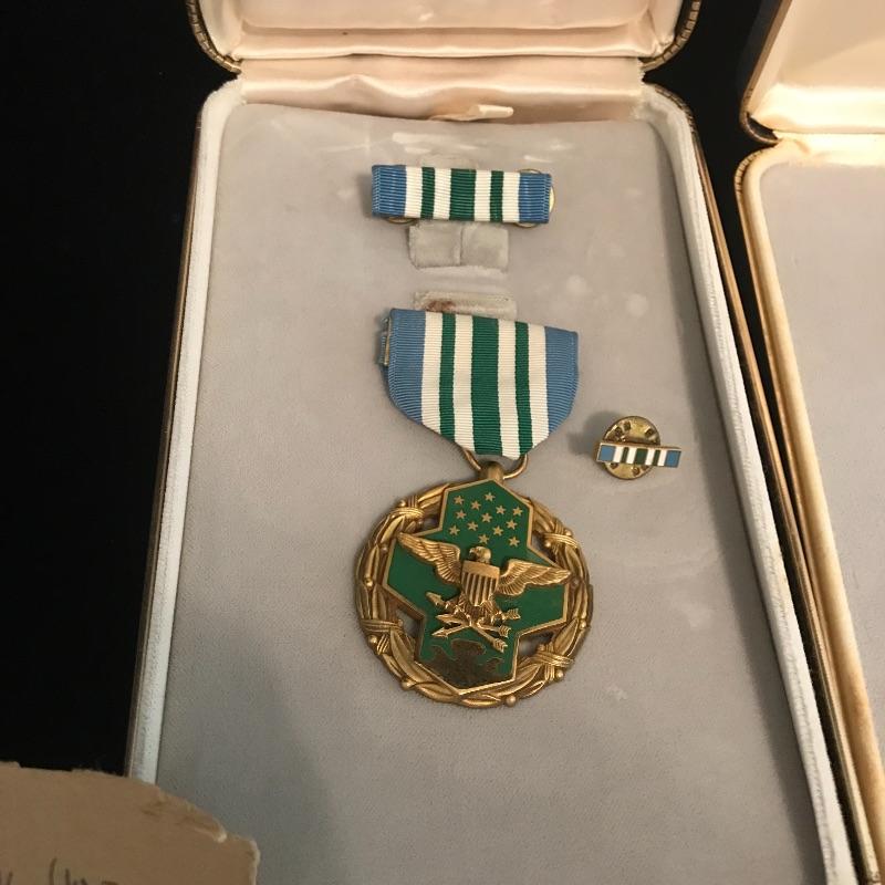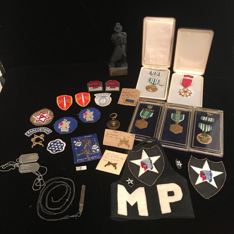 Large assortment of honorable accolades from around the 1960s. Lot includes pins, badges, medals, a 7.5” black metal statuette and more. Some pins have personal information attached. Most of the items fit in an El Producto cigar box. See photos. Shipping available.