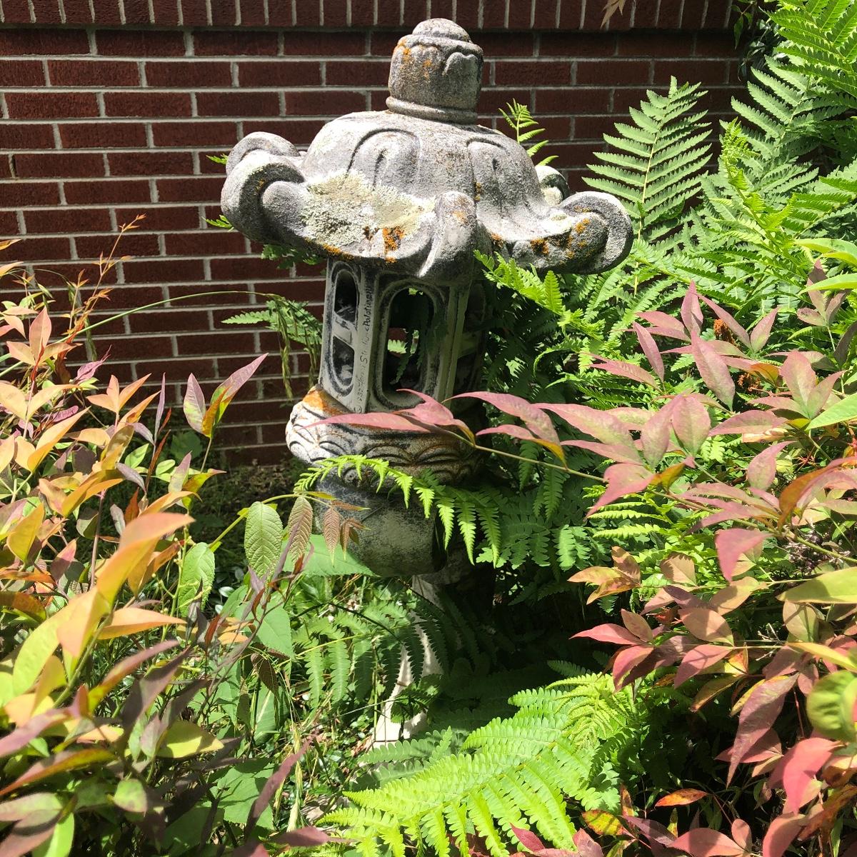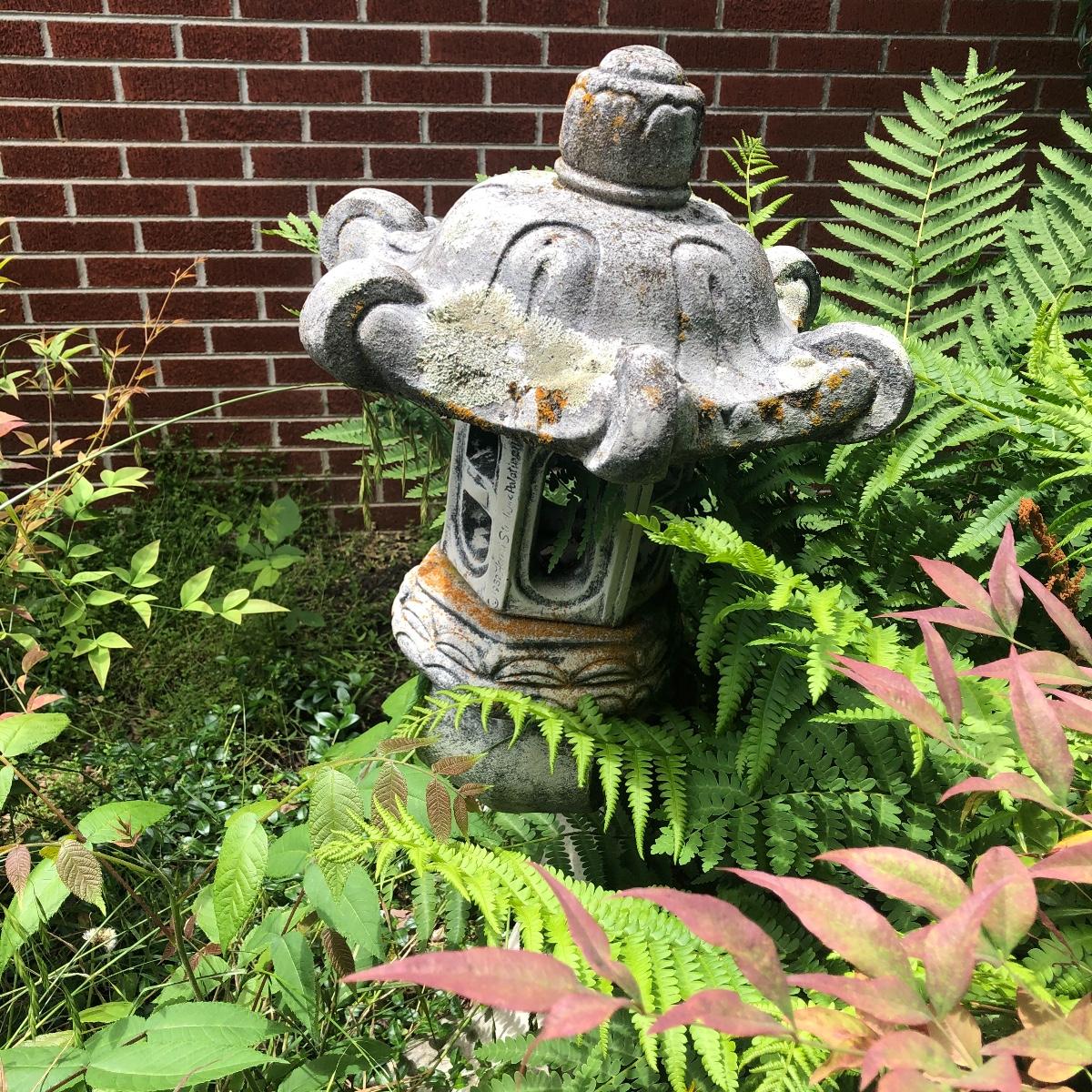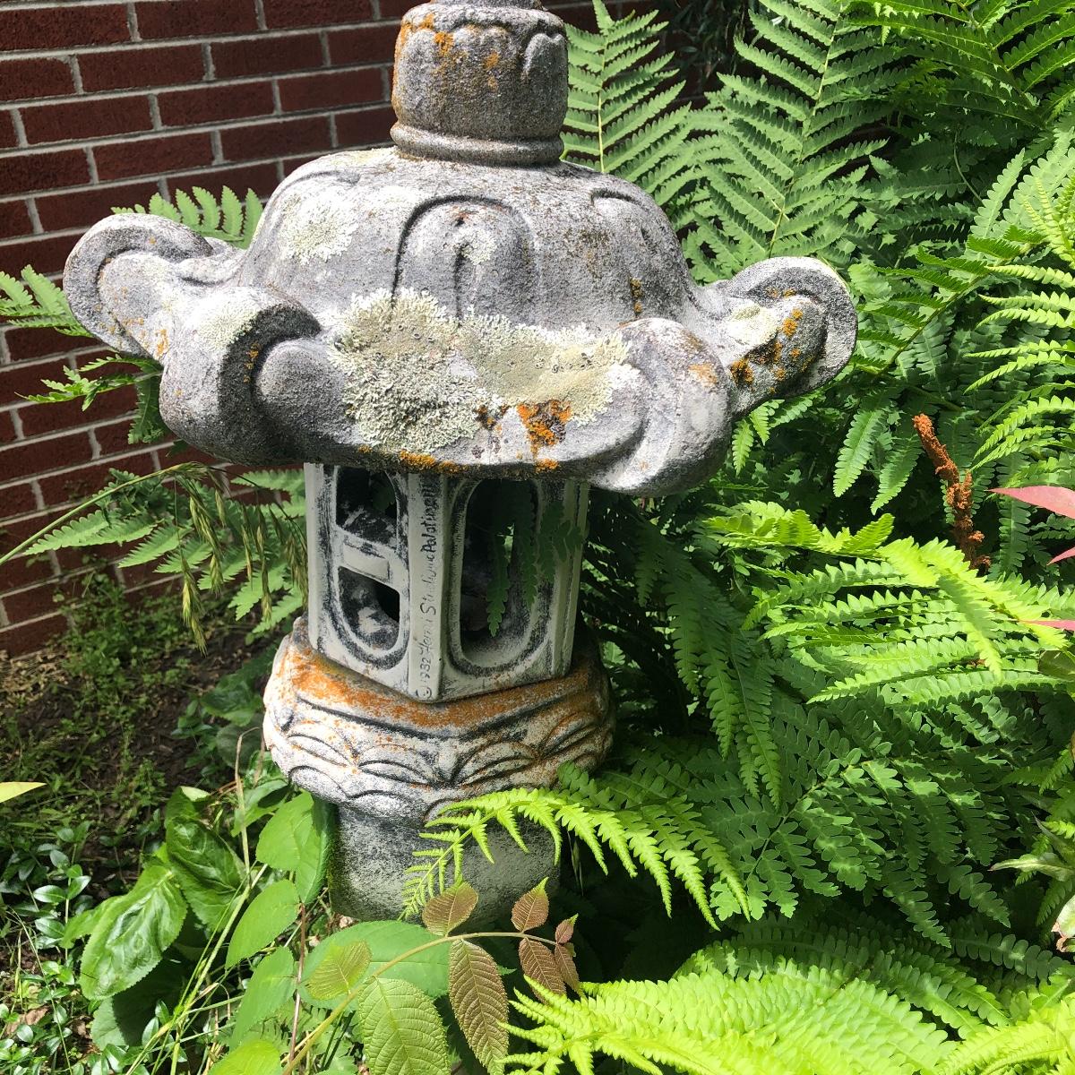 Large stone pagoda with a C-curved base. It’s over 4 feet high. Please bring help to move it.