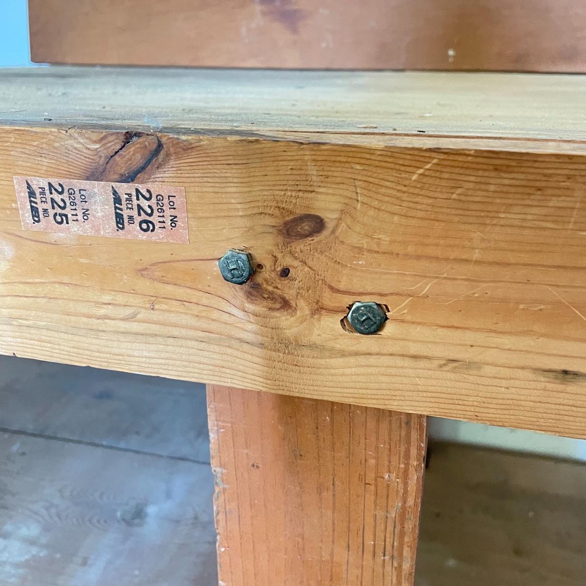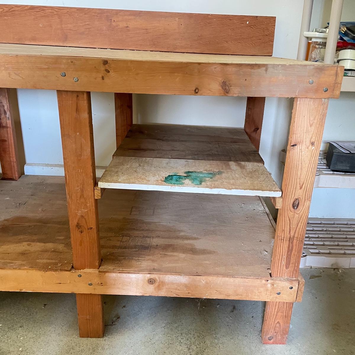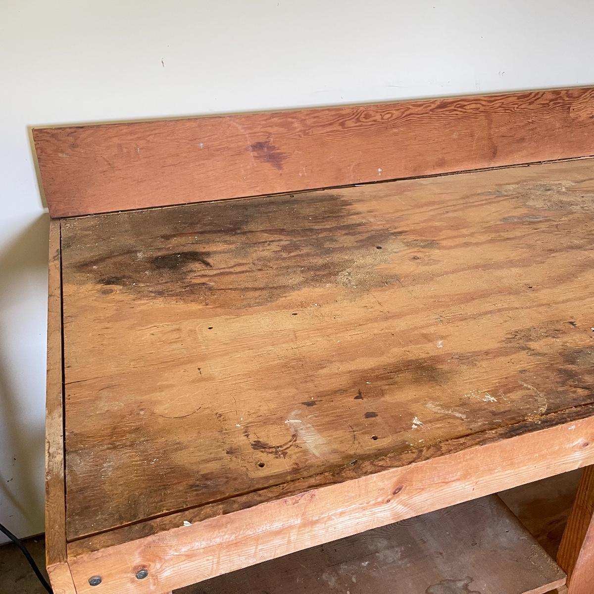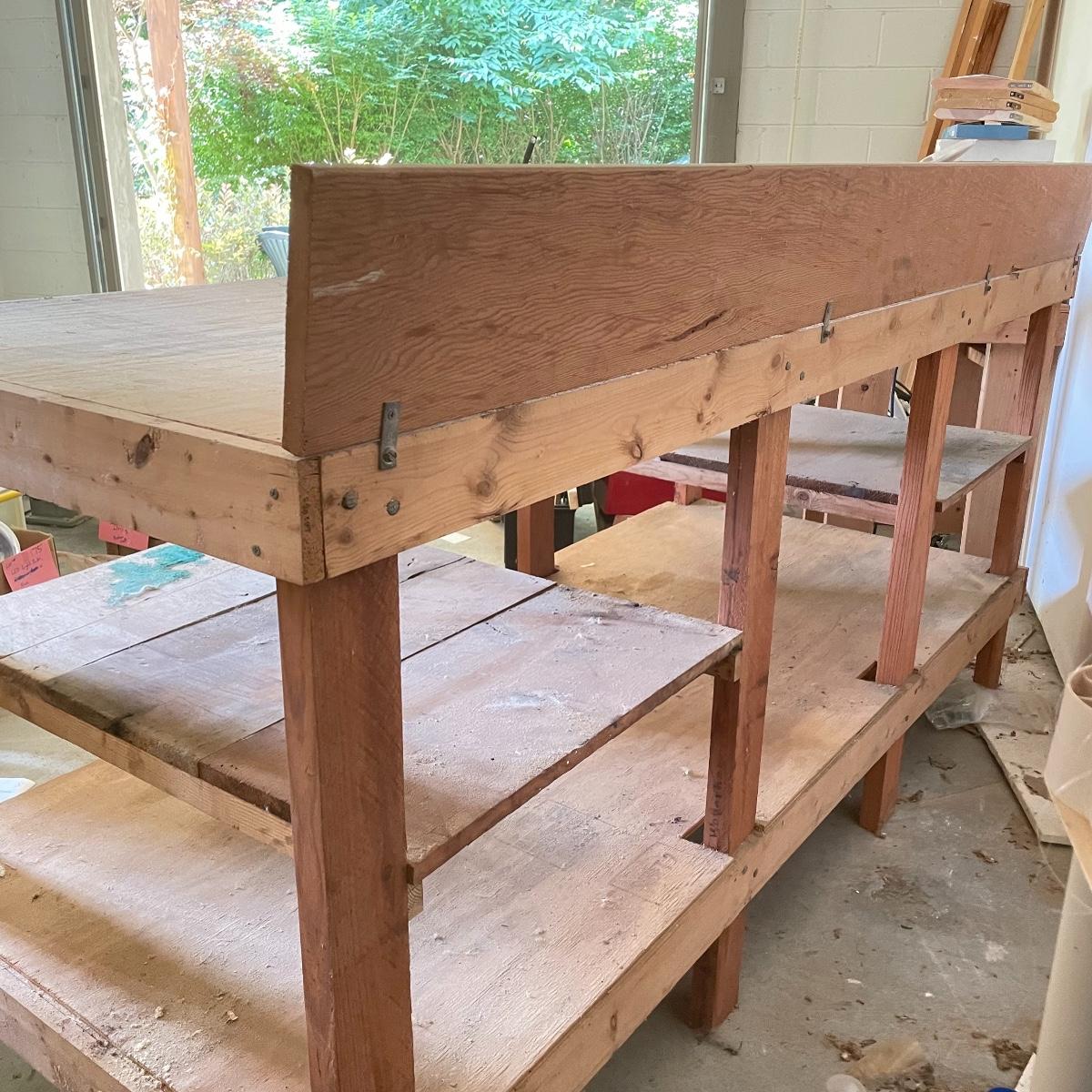 Grand wooden workbench for your shop. This handmade piece is large, measuring 85.5” x 36” x 47.5”. The table top is 40” high. It’s a mix of solid and ply wood secured with a variety of hardware. Please bring help to load, piece is conveniently located in garage. Local pick up only.