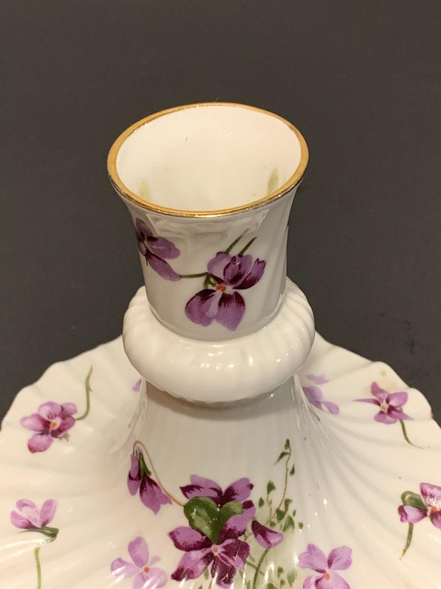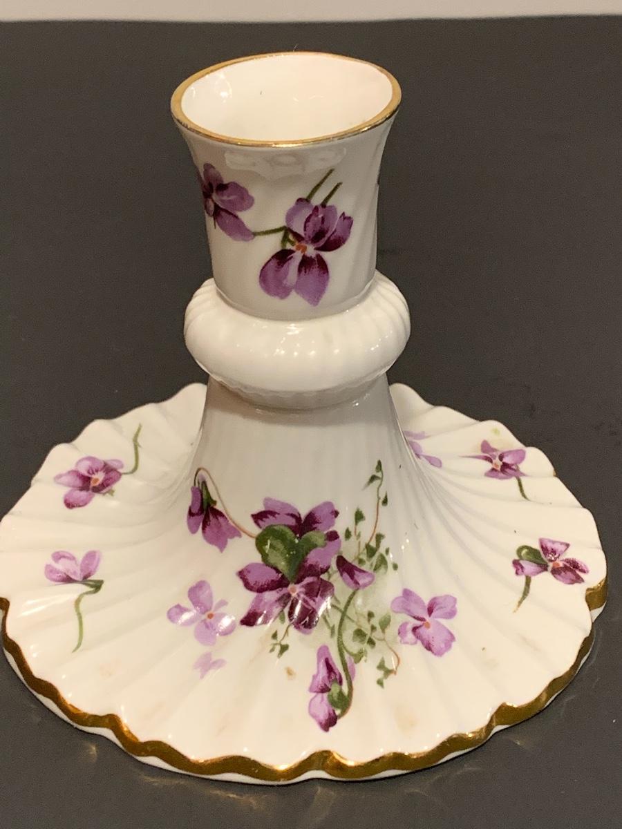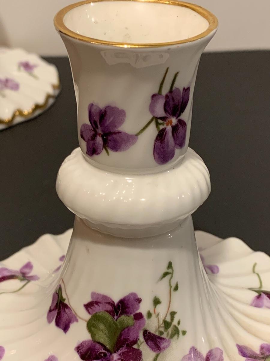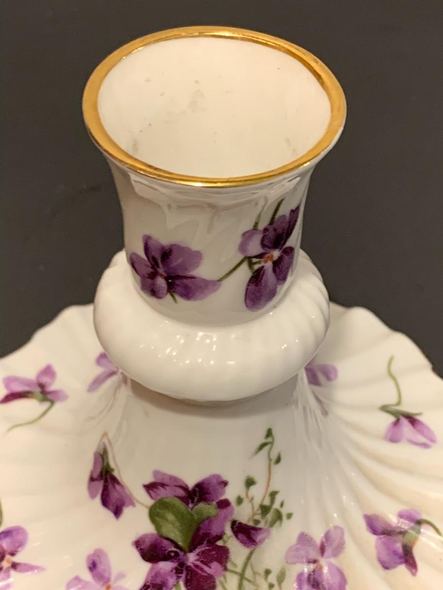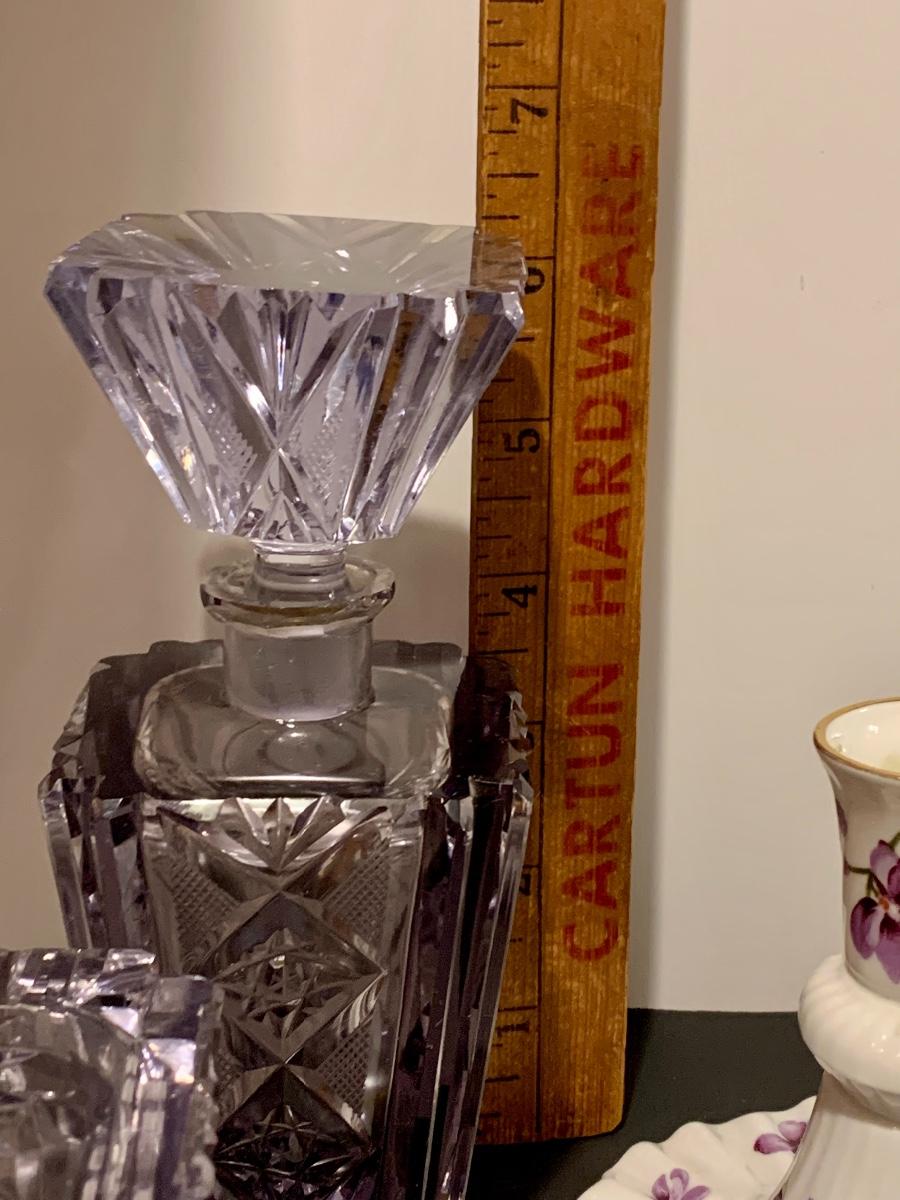 Fabulous pair of vintage "Victorian Violets" bone china candlesticks by Hammersley made in England. and beautiful colored Amethyst colored cut glass trinket box and perfume bottle. These are older and show some wear to the edges. Please see all pictures as they are the best representation of the items. The pictures show condition, measurements if taken, and what is included in the lot. Due to the large amount that we photograph and the time frame, we are not always able to take measurements. All items unless noted, are pre-owned and have been used. If you purchased furniture, you must bring help. We do not allow one person to carry large furniture out on their own. Bring help, tools and a truck for the safety of our client’s homes, and your personal safety. Company policy. Thank you.
