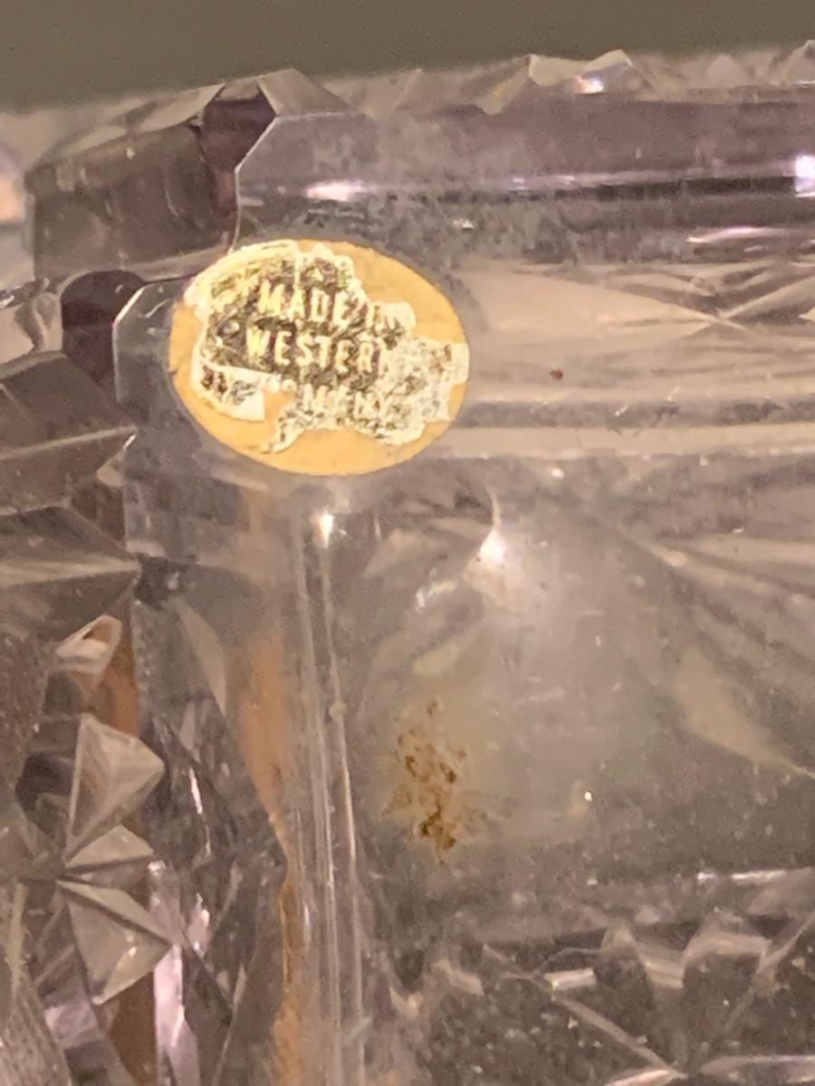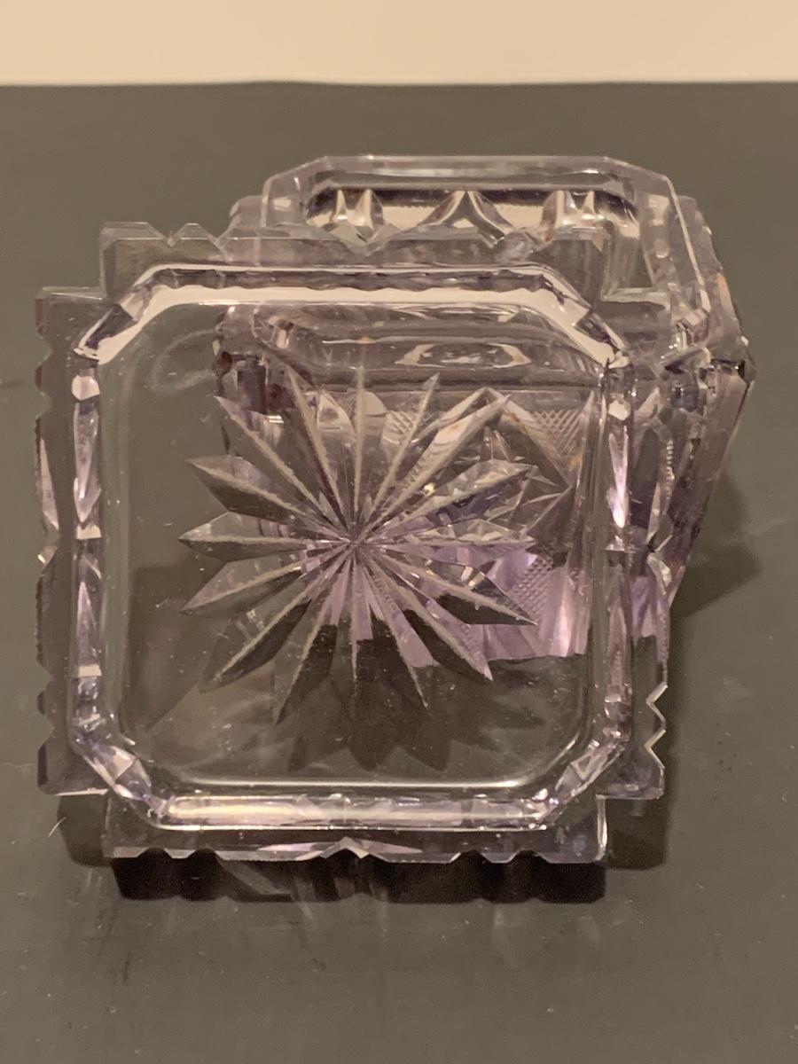 Lot 188: Antique W. Germany Cut Crystal Perfume/Trinket Box & Vintage Hammersley Candlesticks