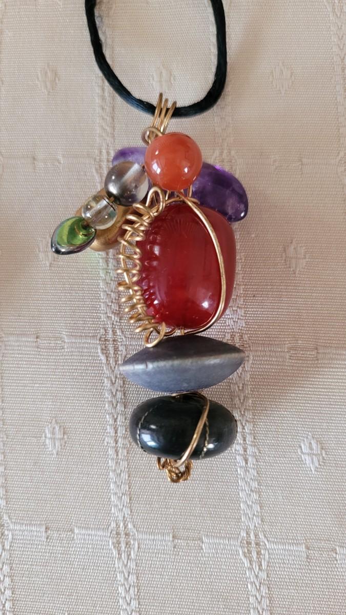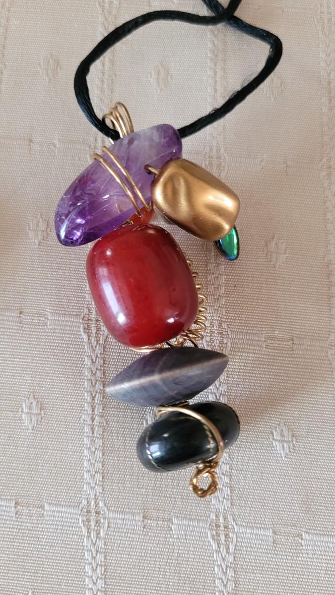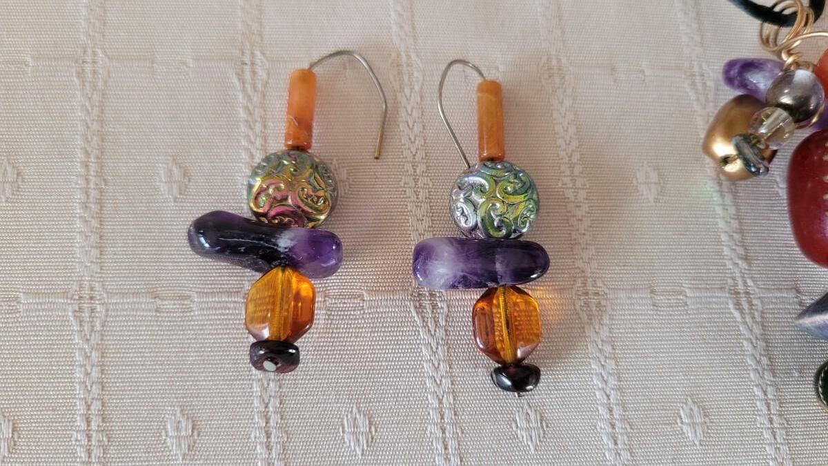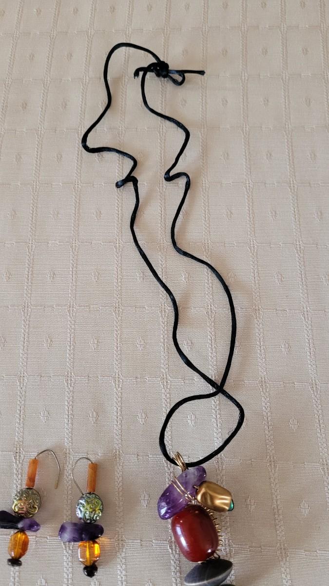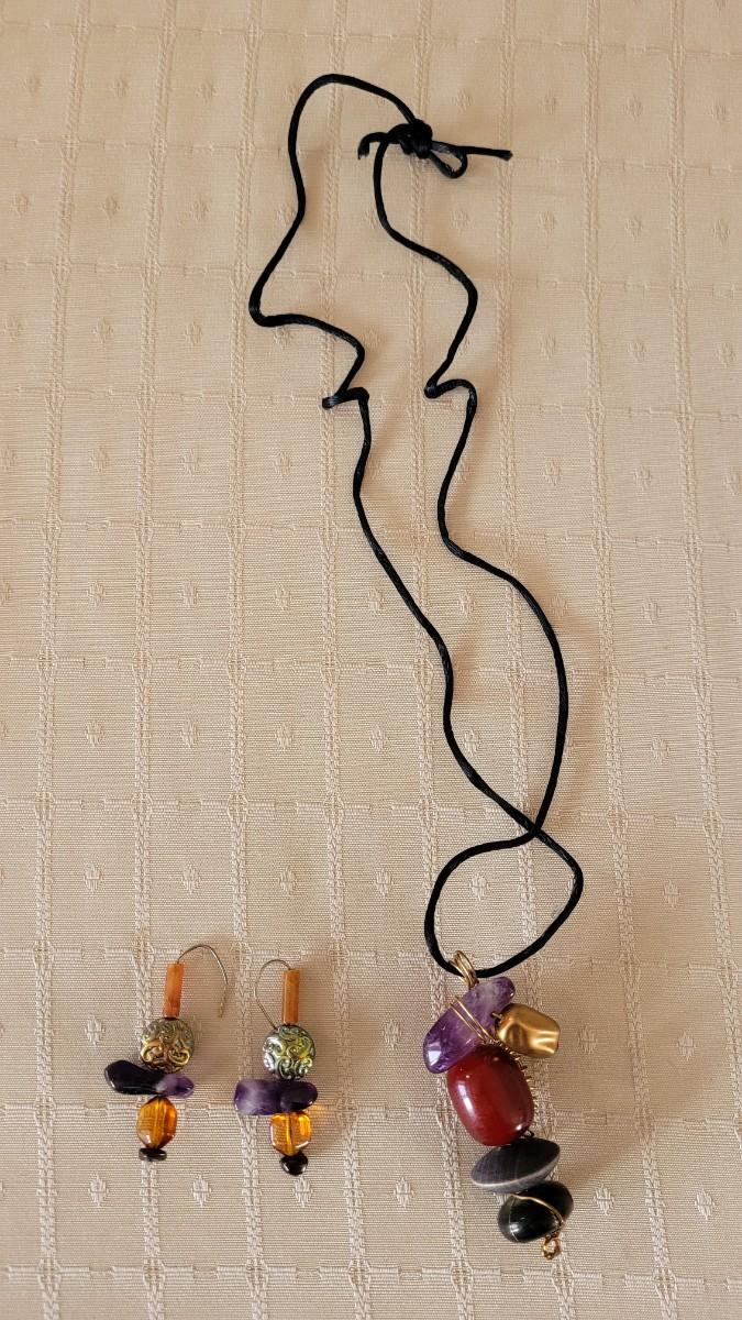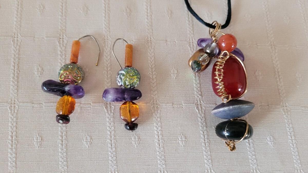 Lot 188: Handmade Wrapped Wire Gemstones and Beaded Pendant Necklace & Earrings