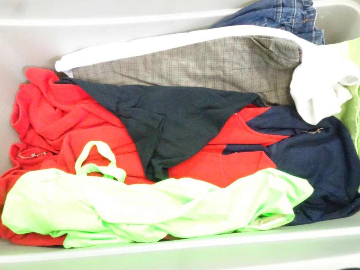 CONTAINER OF LADIES CLOTHING OVER 15 GARMENTS SIZE INCLUDE XL AND SIZE 18
