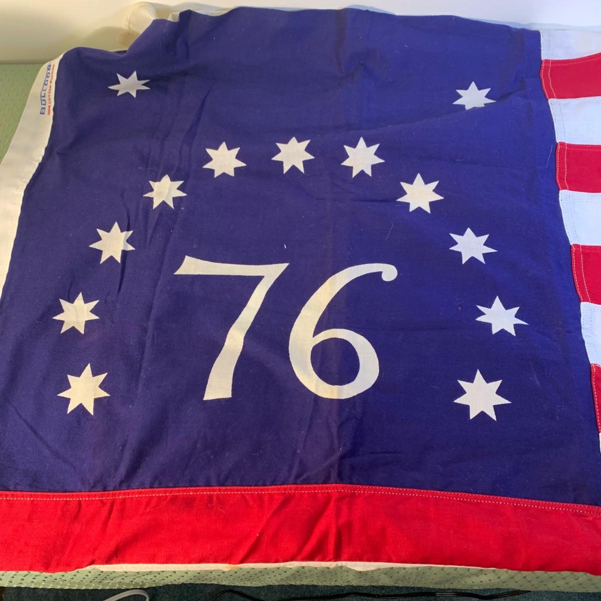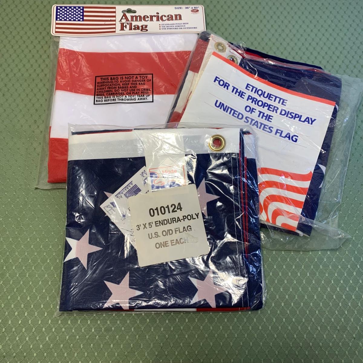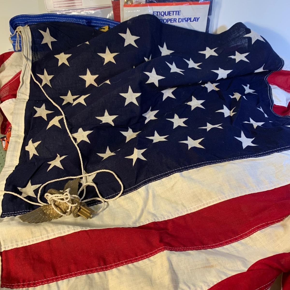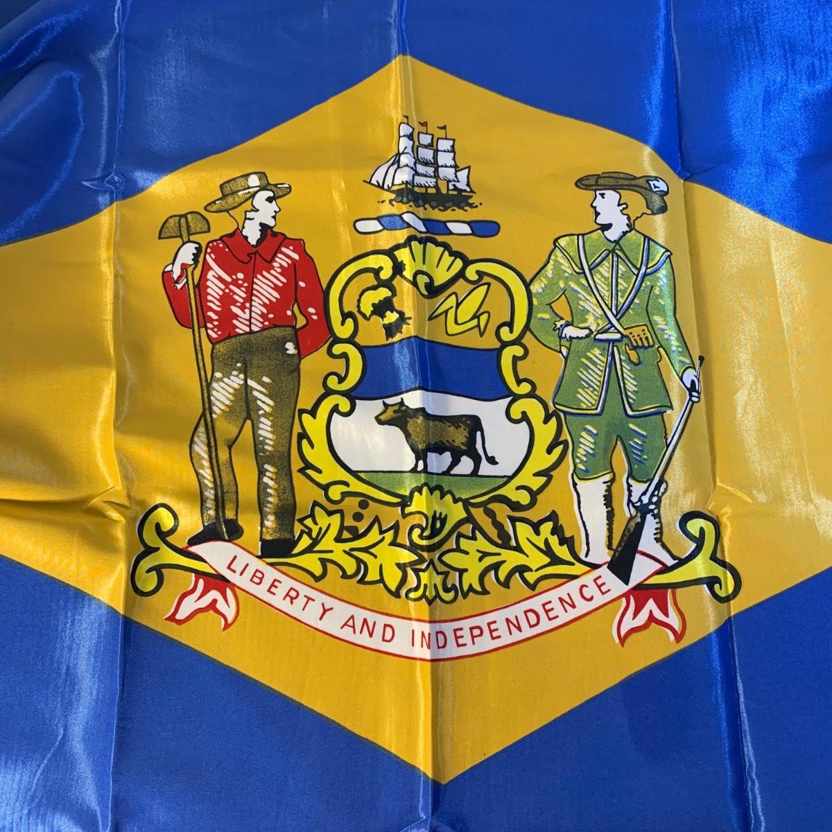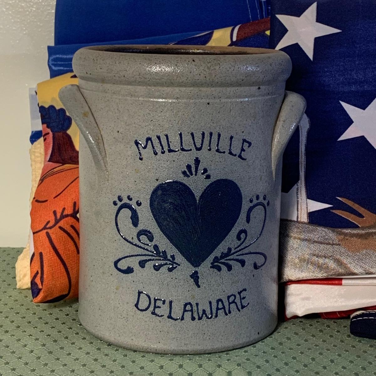 Lot 188: 4th of July Collection- Delaware Mug & Trivit. Stoneware Crock, Large Assortment of Flag Including DE & NJ State & Bethany Beach Flag & 11 US Flags