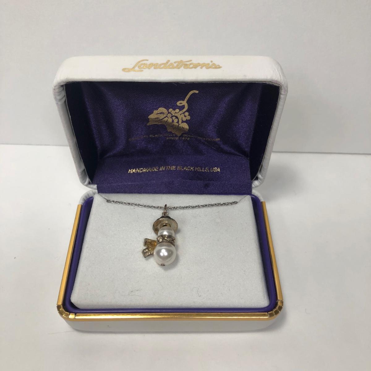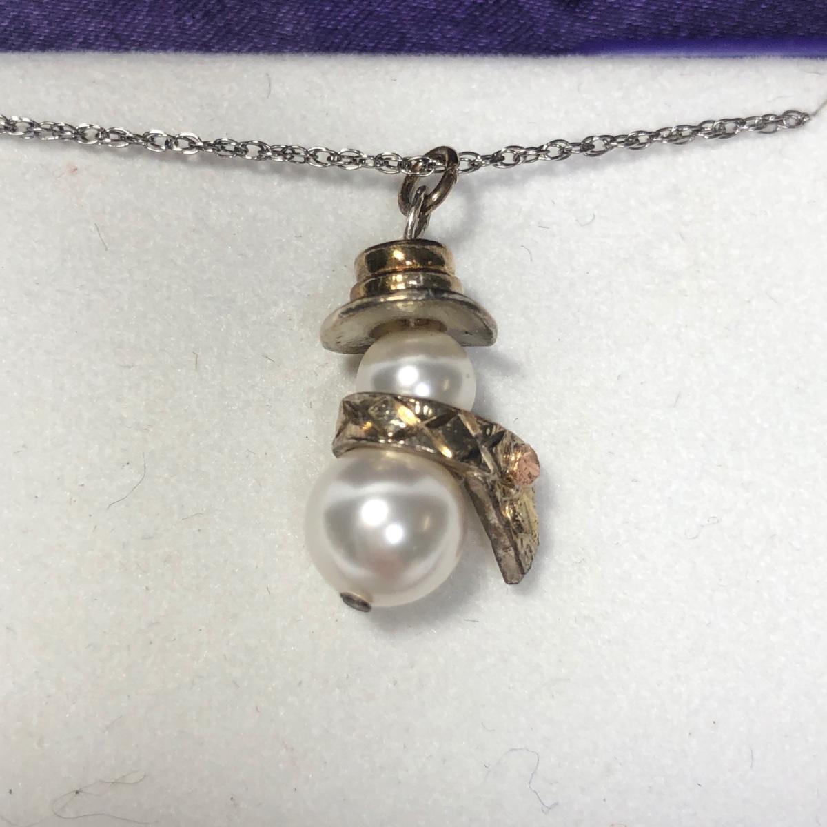 LOT 188: Black Hills Gold Creations Snowman Pendant - 18" Gold Filled Chain 12K Over 925