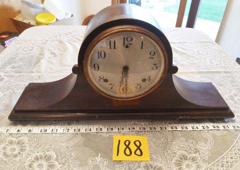 IT SEEMS TO WORK BUT HAVE CHECK TO SEE IF IT KEEPS ACCURATE TIME. COMPLETE WITH WIND UP KEY