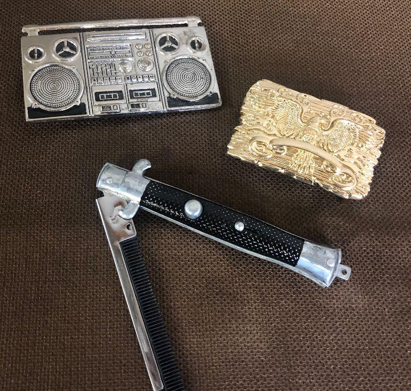 Lot #188 Belt Buckles Eagle and Radio, + Switch Blade Comb