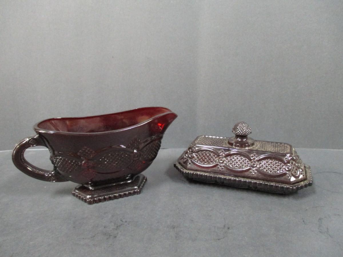 Lot 188 - Cape Cod Ruby Red Avon Gravy Dish & Butter Dish