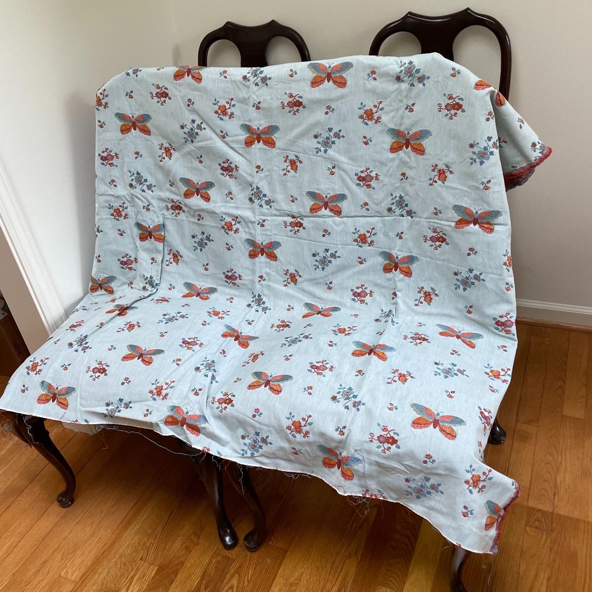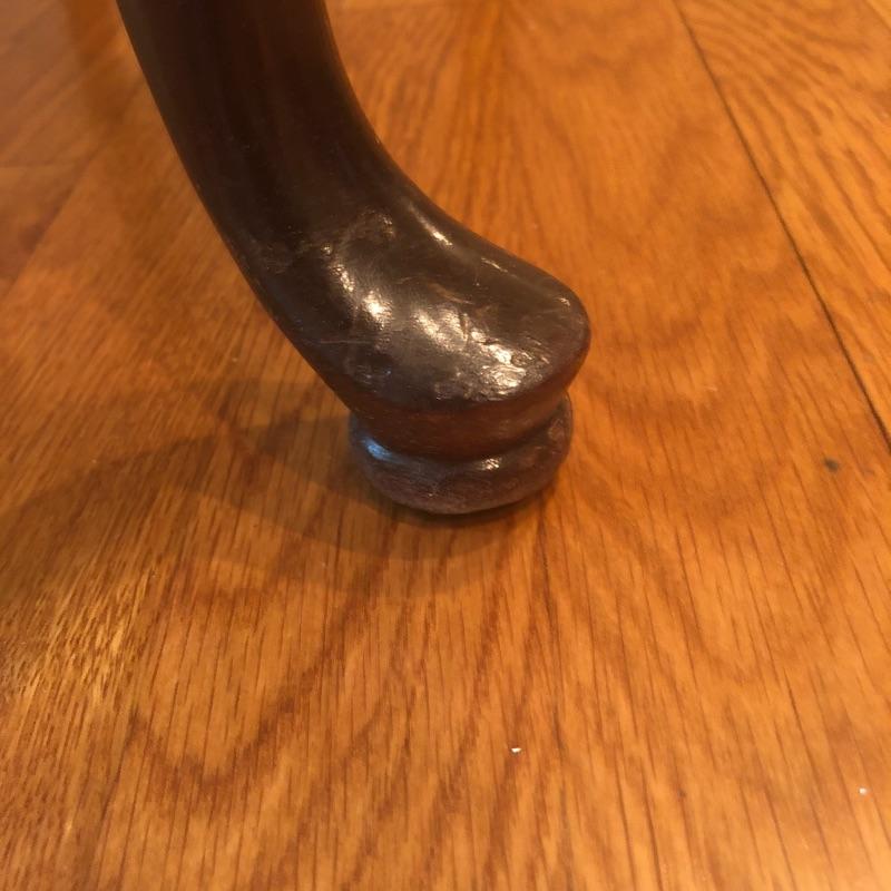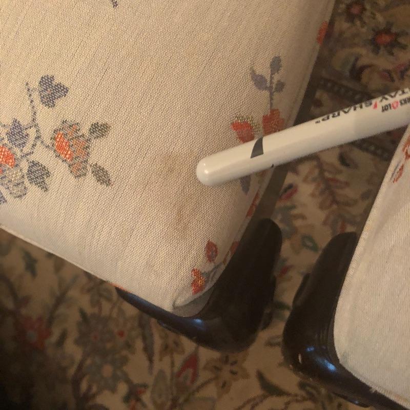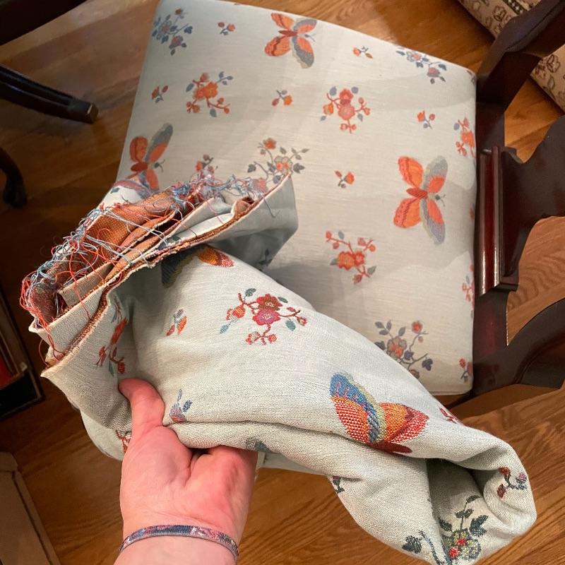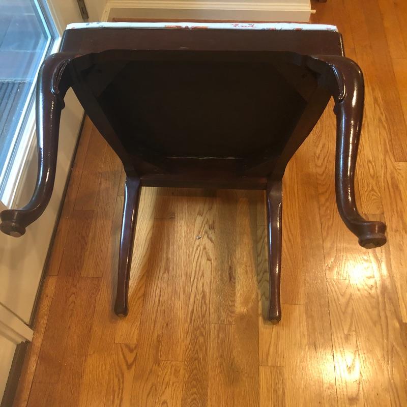 There is a minor stain on one chair shown in images. We’ve included some extra upholstery if the winning bidder would like to reupholster this seat or add to other chairs acquired later.