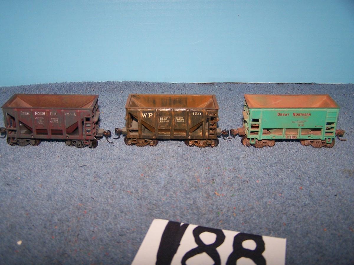 THESE ARE GREAT COLLECTABLE HO TRAIN--ORE CARS KADEE COUPLERS!! LIGHT WEAR..