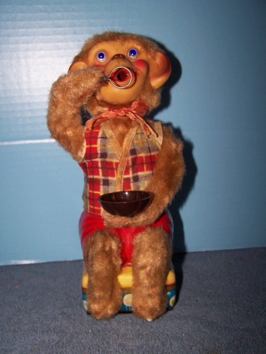 LOT 188 GREAT VINTAGE TIN LITHO BATTERY OP BUBBLE BLOWING MONKEY