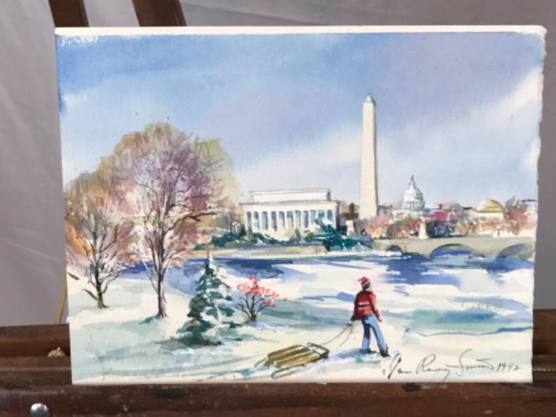 D - 188 Jean Ranney Smith Original Watercolor Paintings “Statue” “National Mall”
