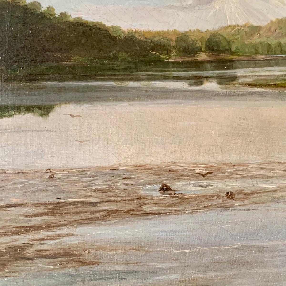 LOT 188 L: Framed Oil Painting on Wooden Board: River Landscape