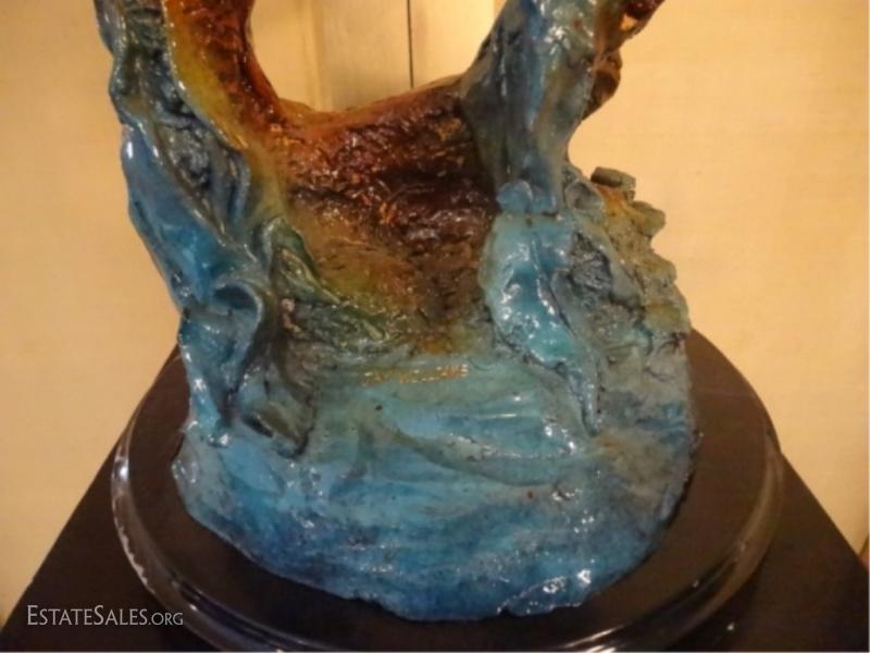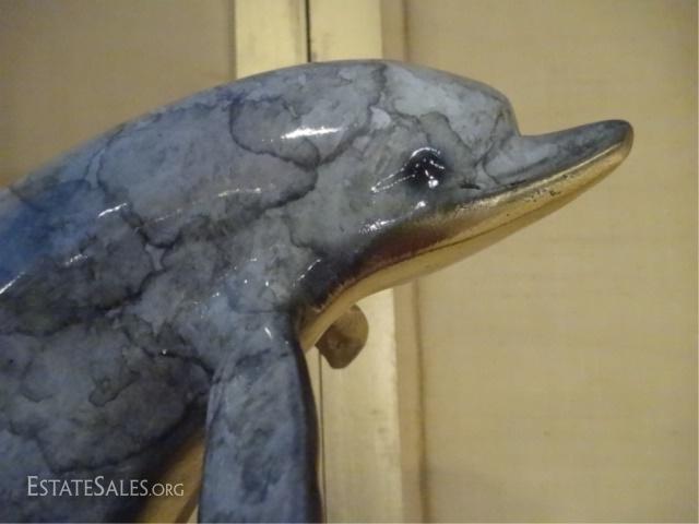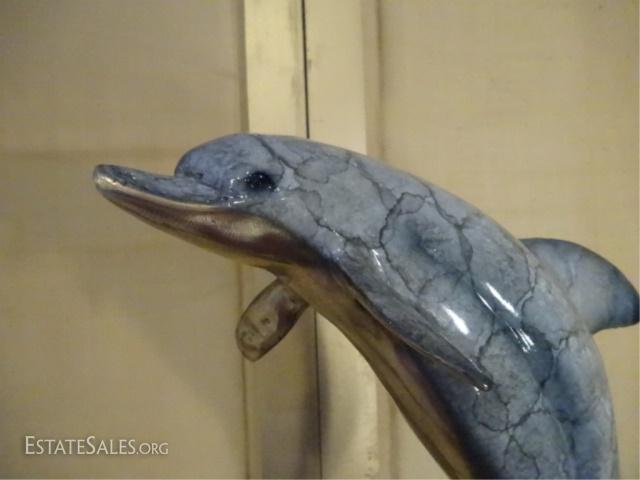 LOT 188: LARGE PATINATED BRONZE DOLPHIN SCULPTURE WITH SEA TURTLE