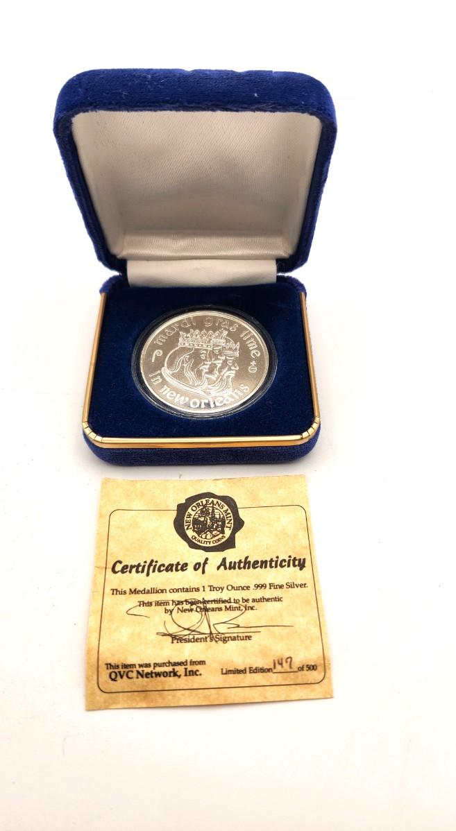 Mardi Gras New Orleans .999 silver doubloon (1 troy ounce) - #147/500. In case with certificate. This was sold by QVC - not dated.