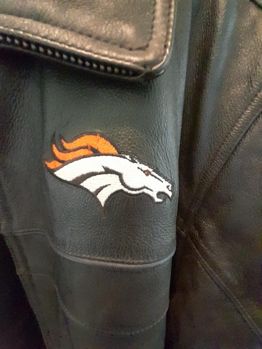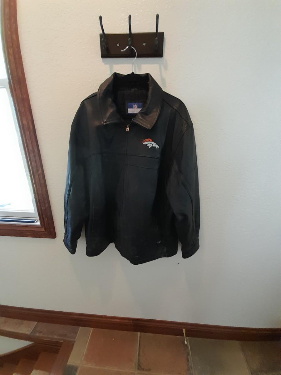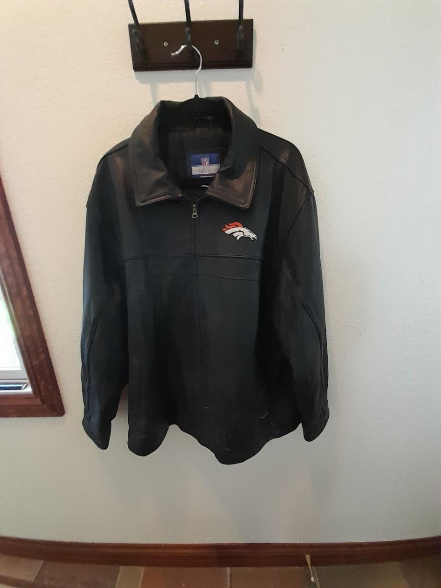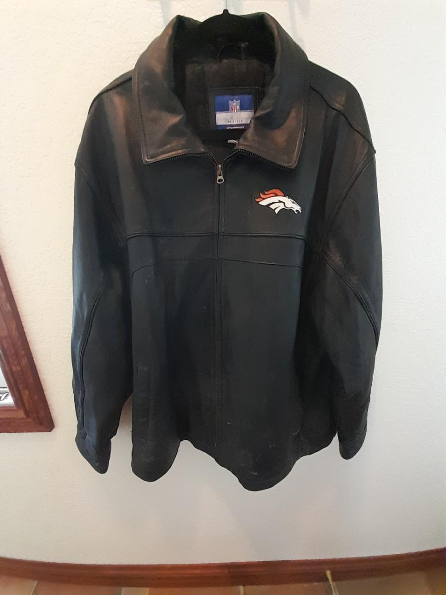 MEN'S NFL TEAM APPAREL REEBOK BRONCO'S LEATHER COAT XL (small tear near pocket)