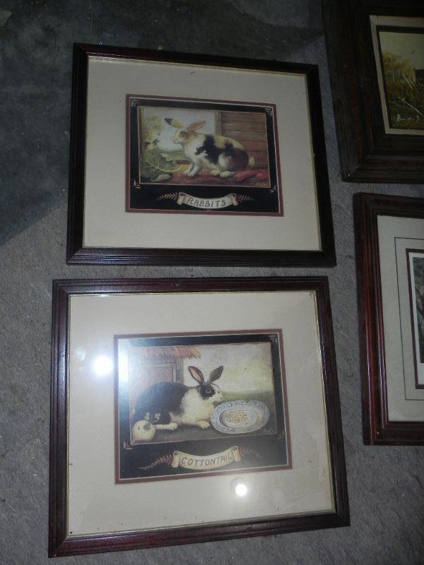 18X16" OIL PAINTING, BUNNIES AND HOME SCENE