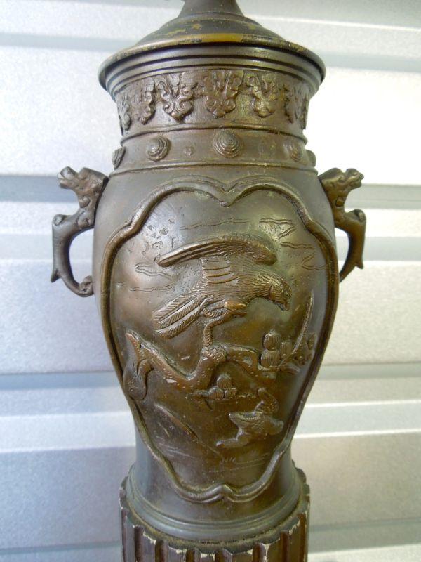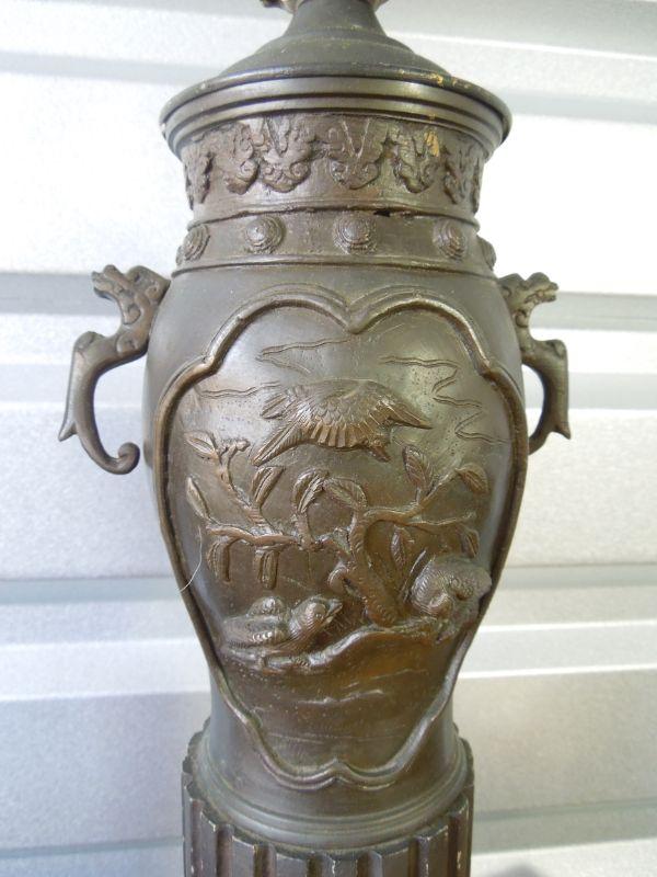 Lot 188: Pair of Pedestal Brass Urns Antique Lamps 20th Century