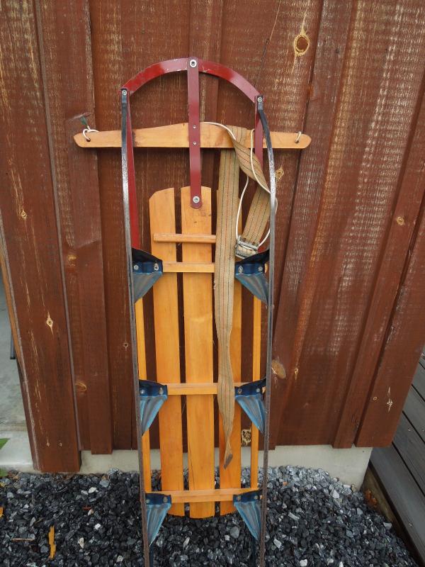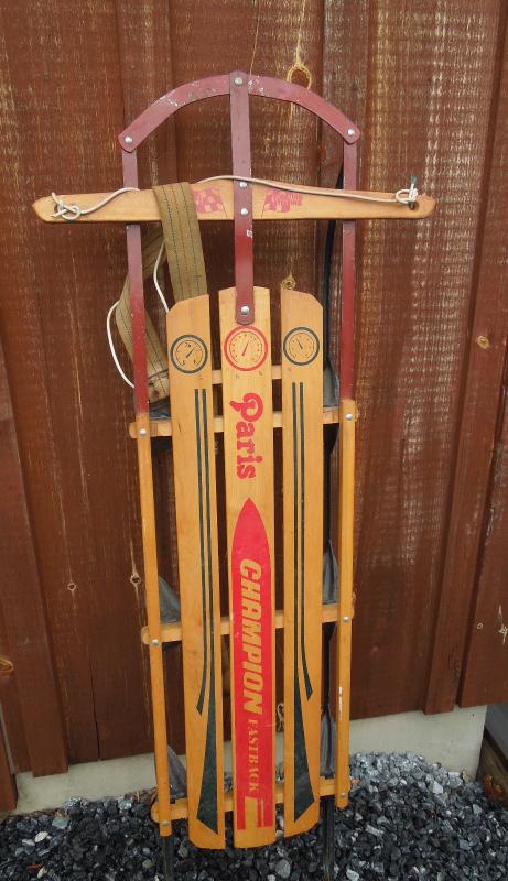 56" L x 21" W. In very good condition with hardly any rust. Some paint scaping on metal parts.