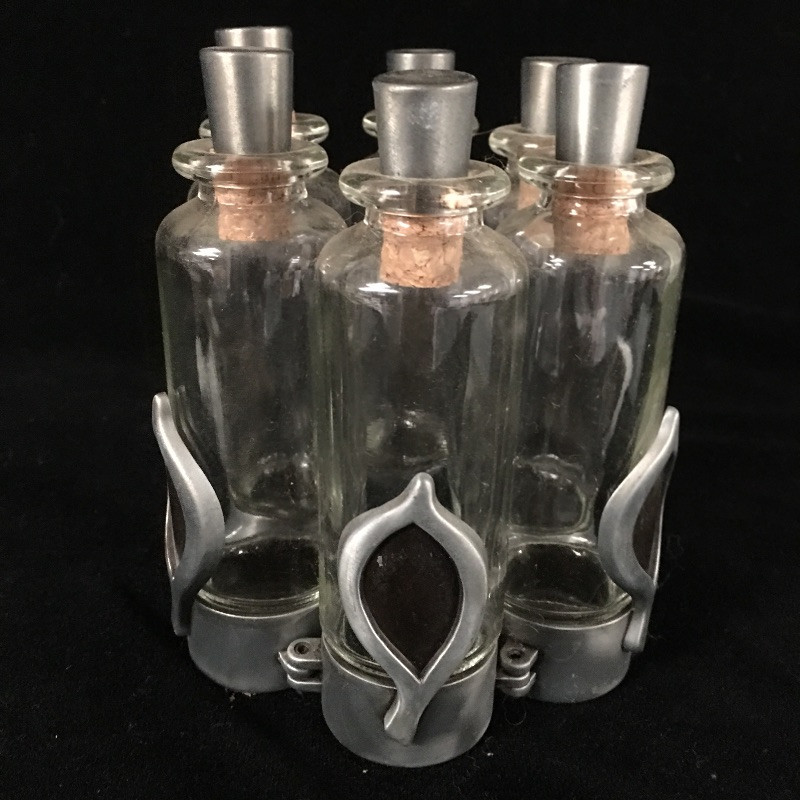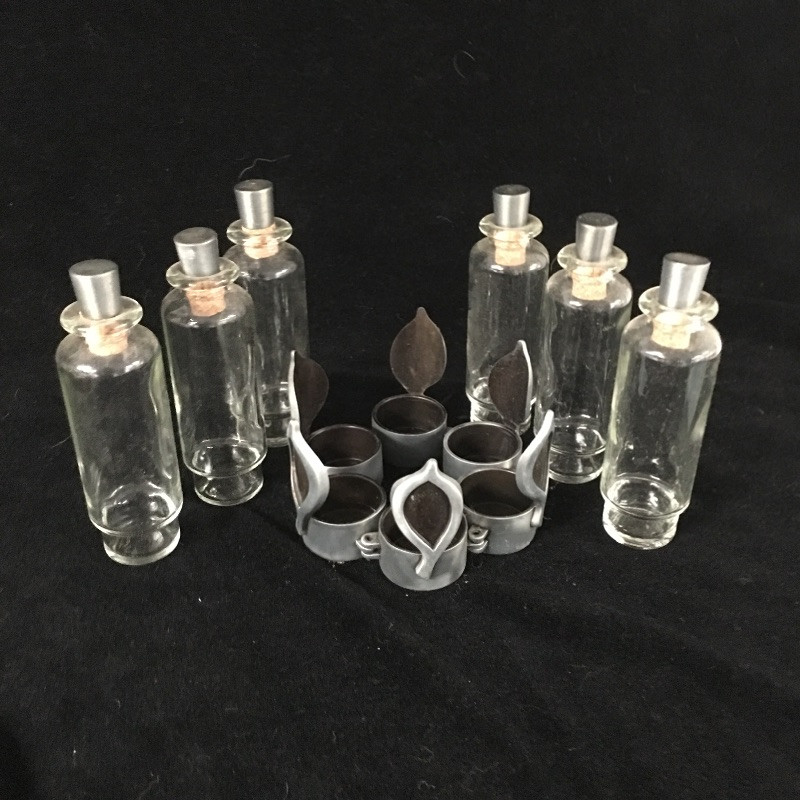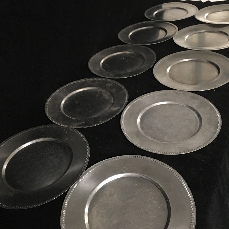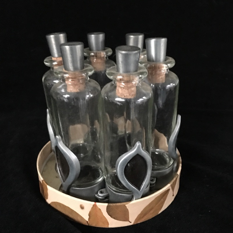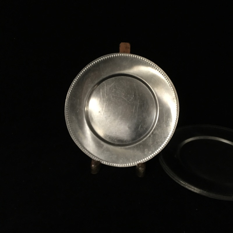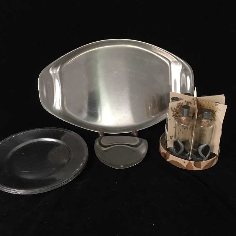 Ten Stainless steel plates, serving tray six glass bottles with metal stand. You won’t have to worry about breaking these plates.