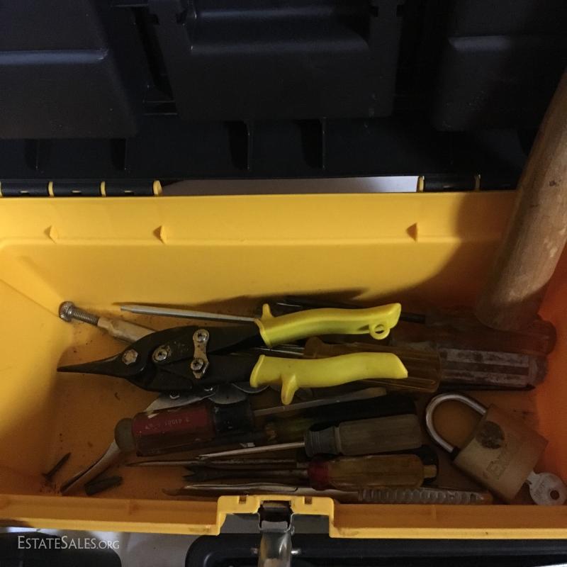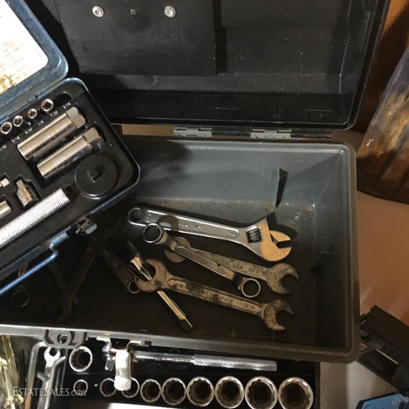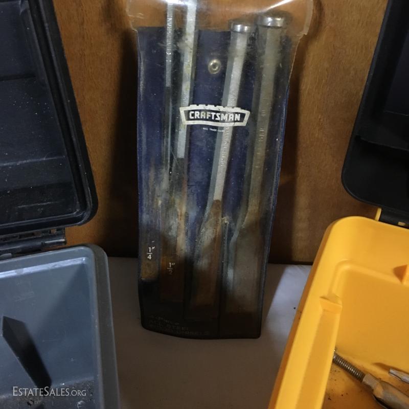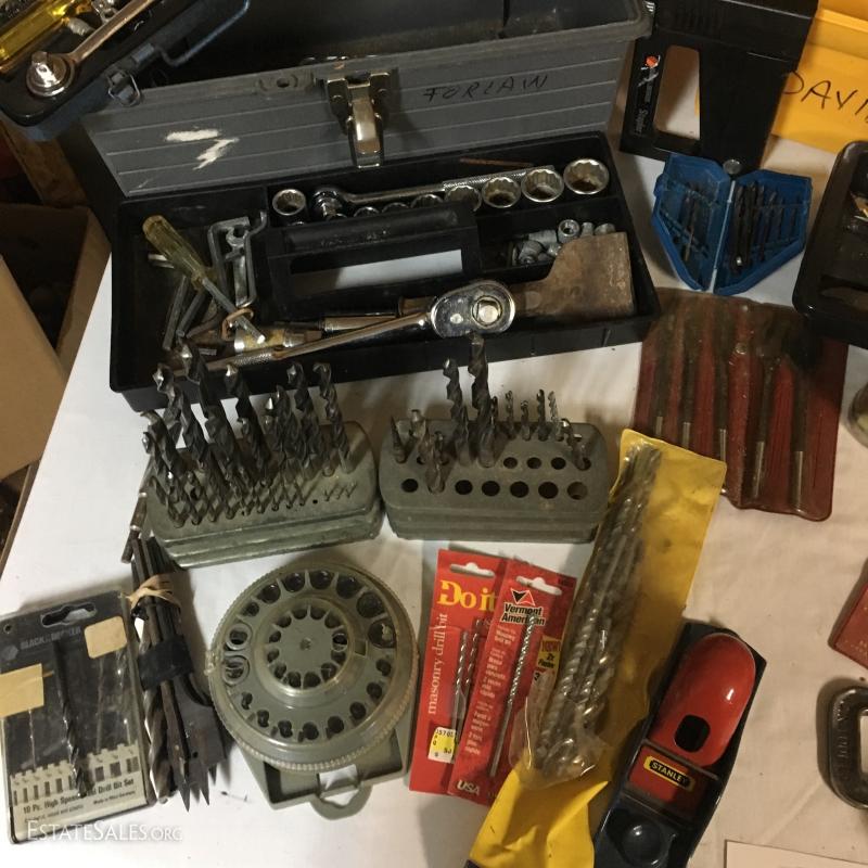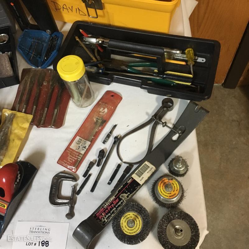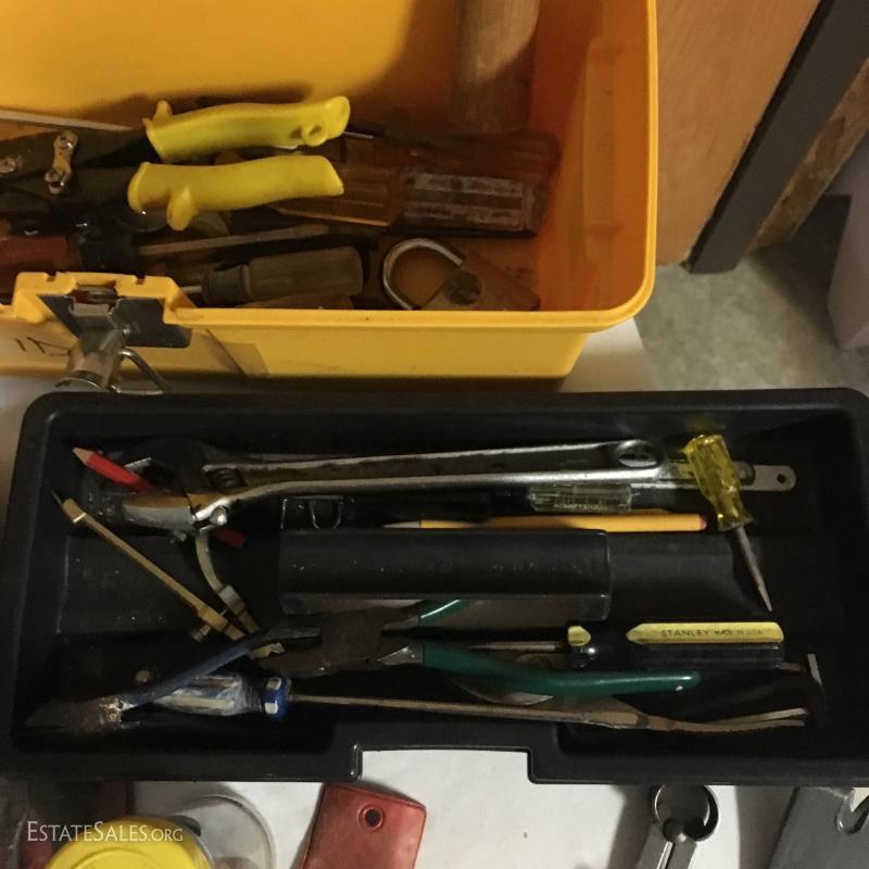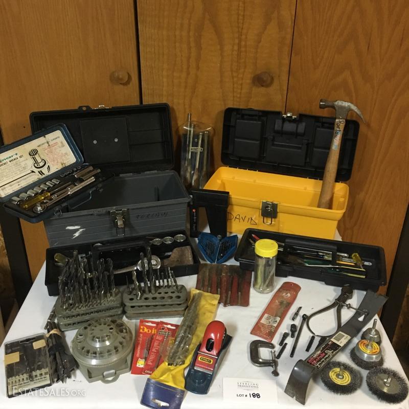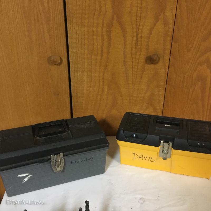 Two tool boxes with some tools in them as well as some misc. extra tools. to include drill bits, brushes, and more.