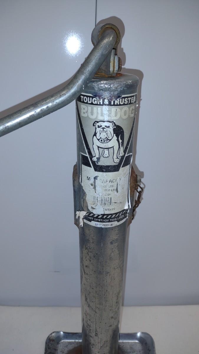 BULLDOG TRAILER JACK, TOP-WIND SWIVEL PIPE MOUNT JACK. THIS IS THE JACK COMMONLY USED AS SUPPORT JACKS ON THE BACK OF PJ TRAILERS CAR HAULER AND BUGGY HAULER TRAILERS.