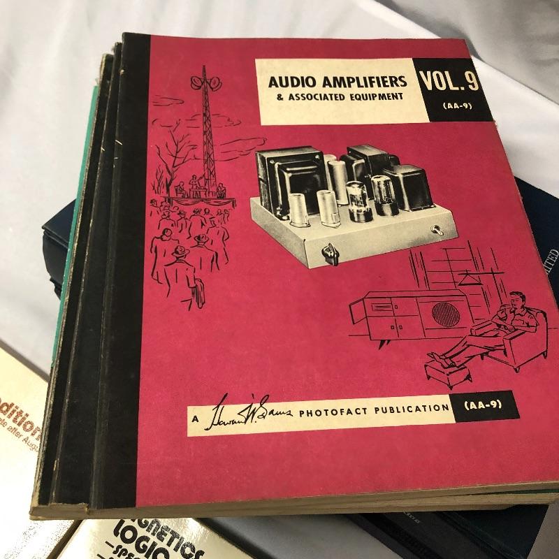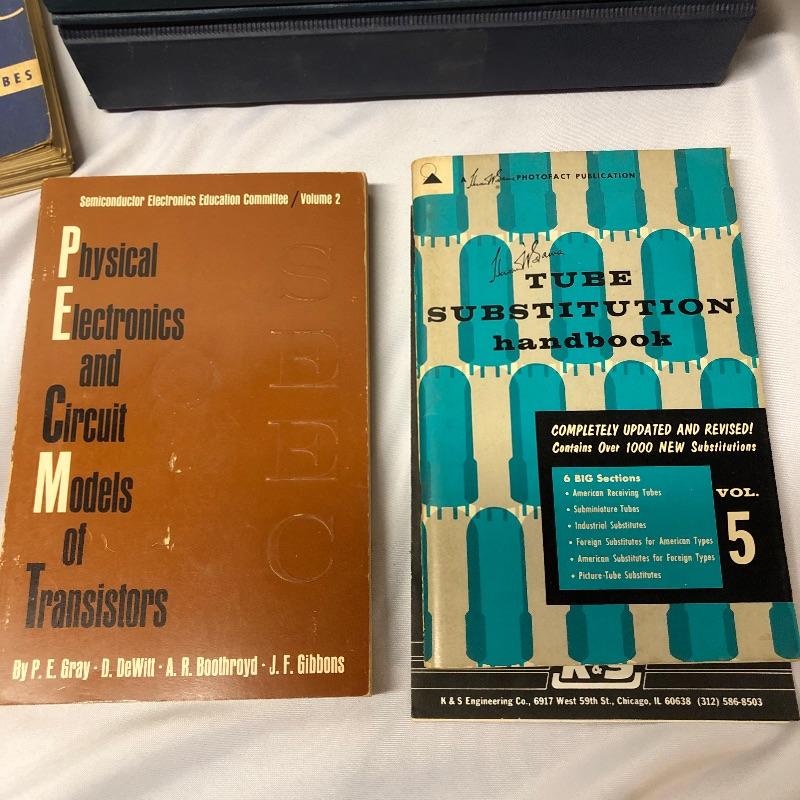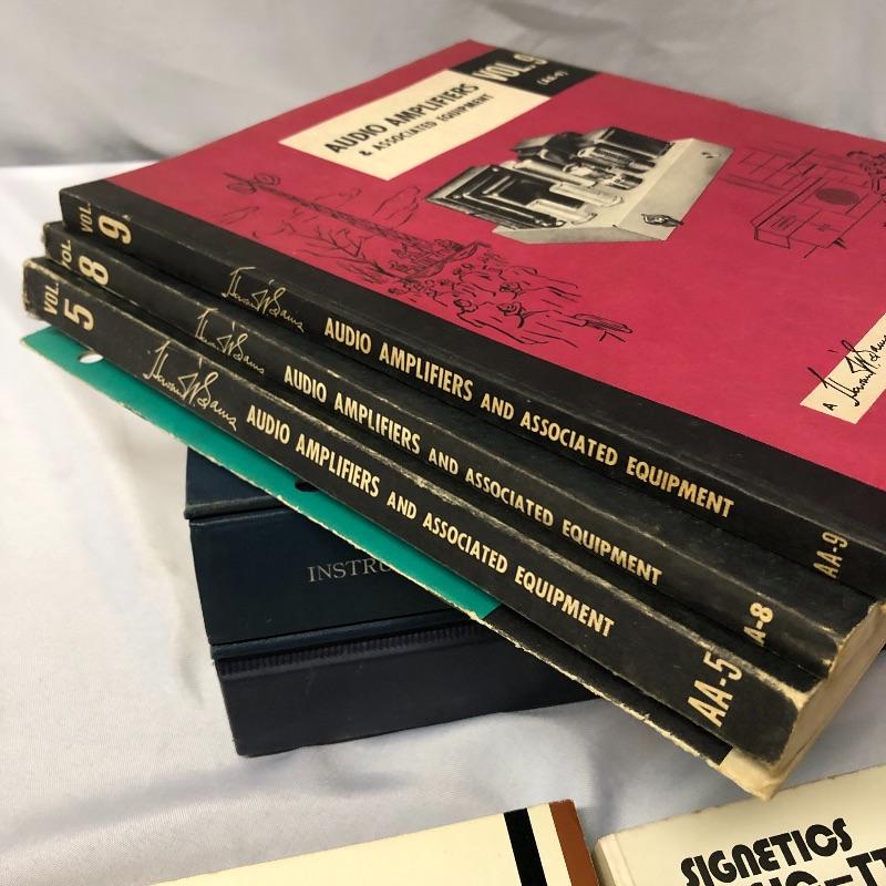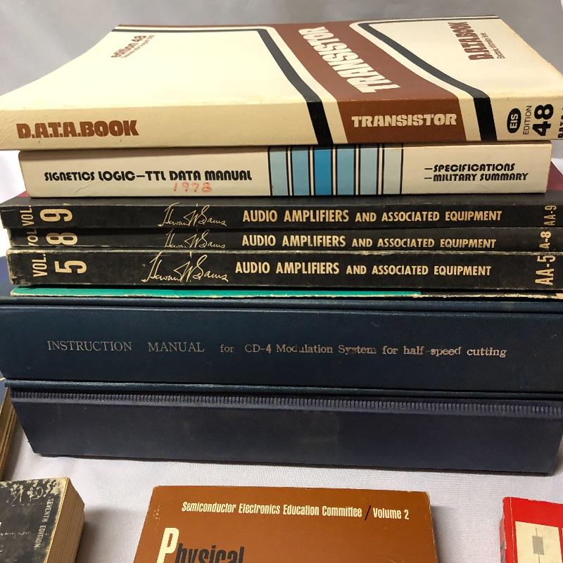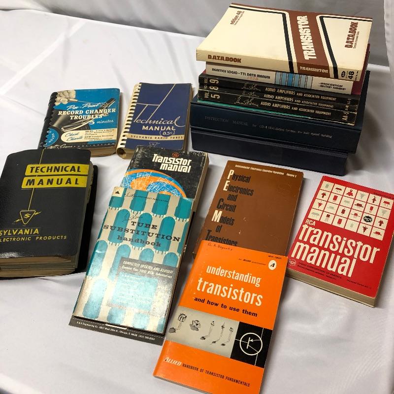 This lot includes five books on transistors, three audio amplifiers, two technical manuals and more.