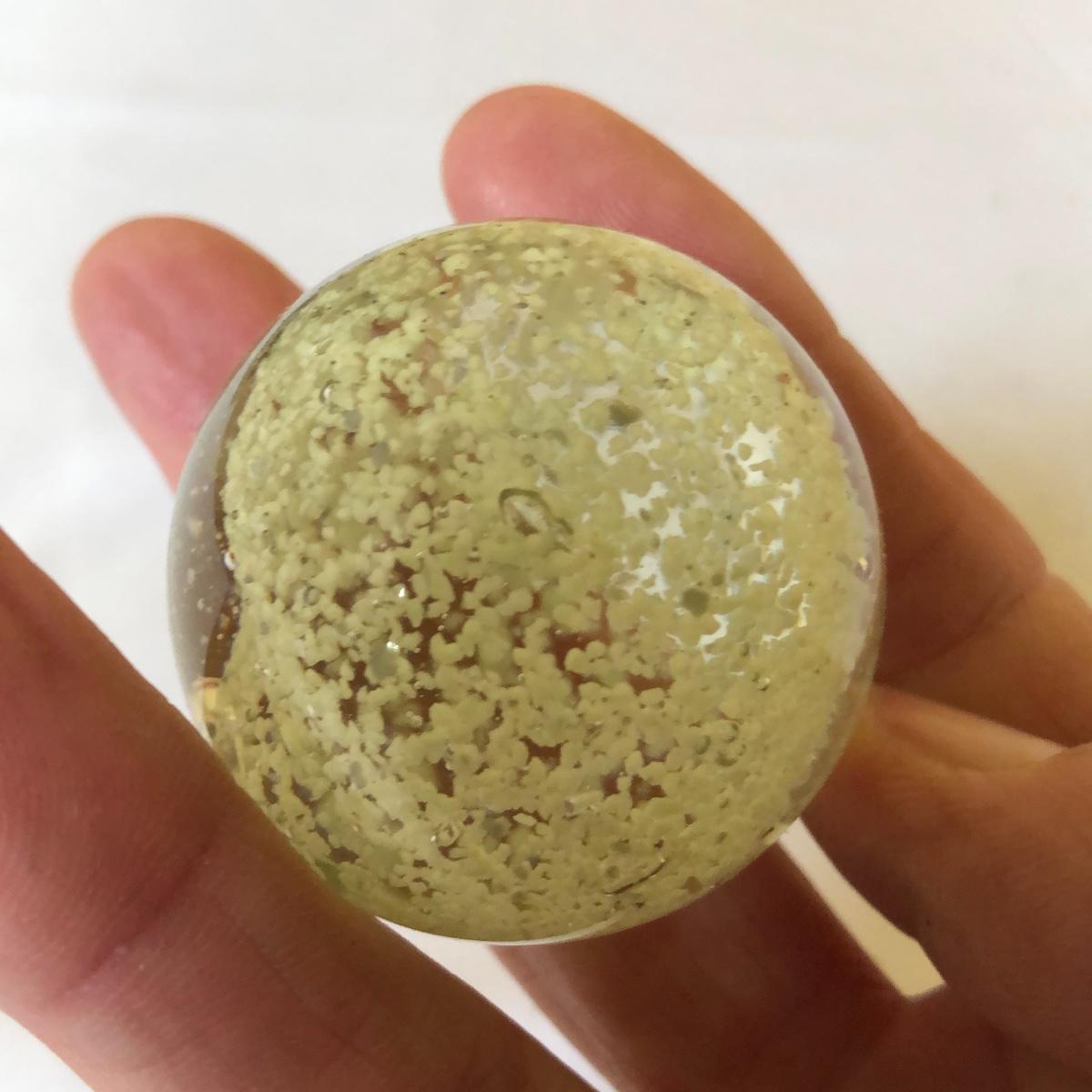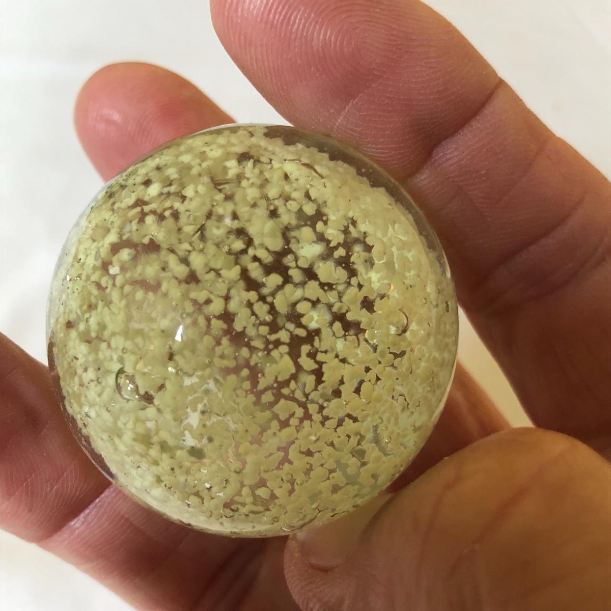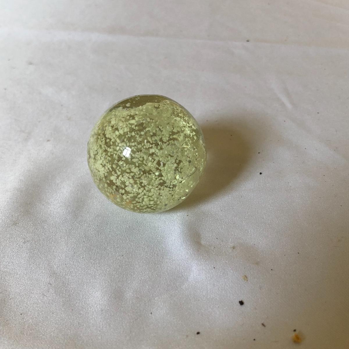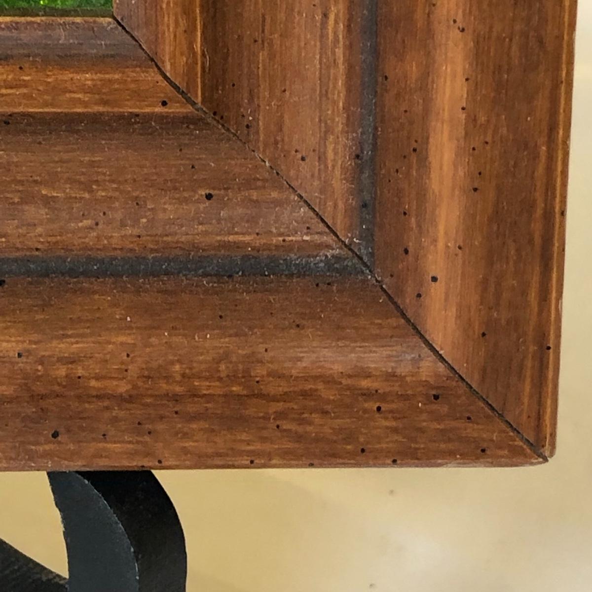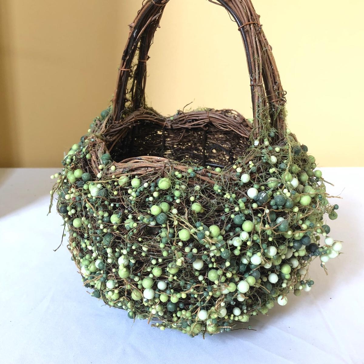 Friends will be green with envy when they see these gorgeous tinsel paintings; this is a form of reverse painting onto the glass. Both appear to have signatures that are indecipherable and both come mounted in wood frames. The owl frame measures 11.5” x 14.5” and it does have a few nicks, see image. Other gorgeous green decor items include an unusual wood small sculpture with green glass ball, a single green glass ball, a beaded basket and a small 3 drawer storage cabinet that measures 5.5” square x 15” tall.