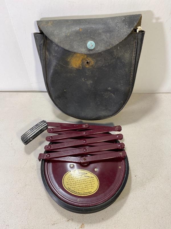 Lot# 188 Vintage Lufkin Model 202 Wheel Measure Leather CaseTape Measure Stanley Craftsman