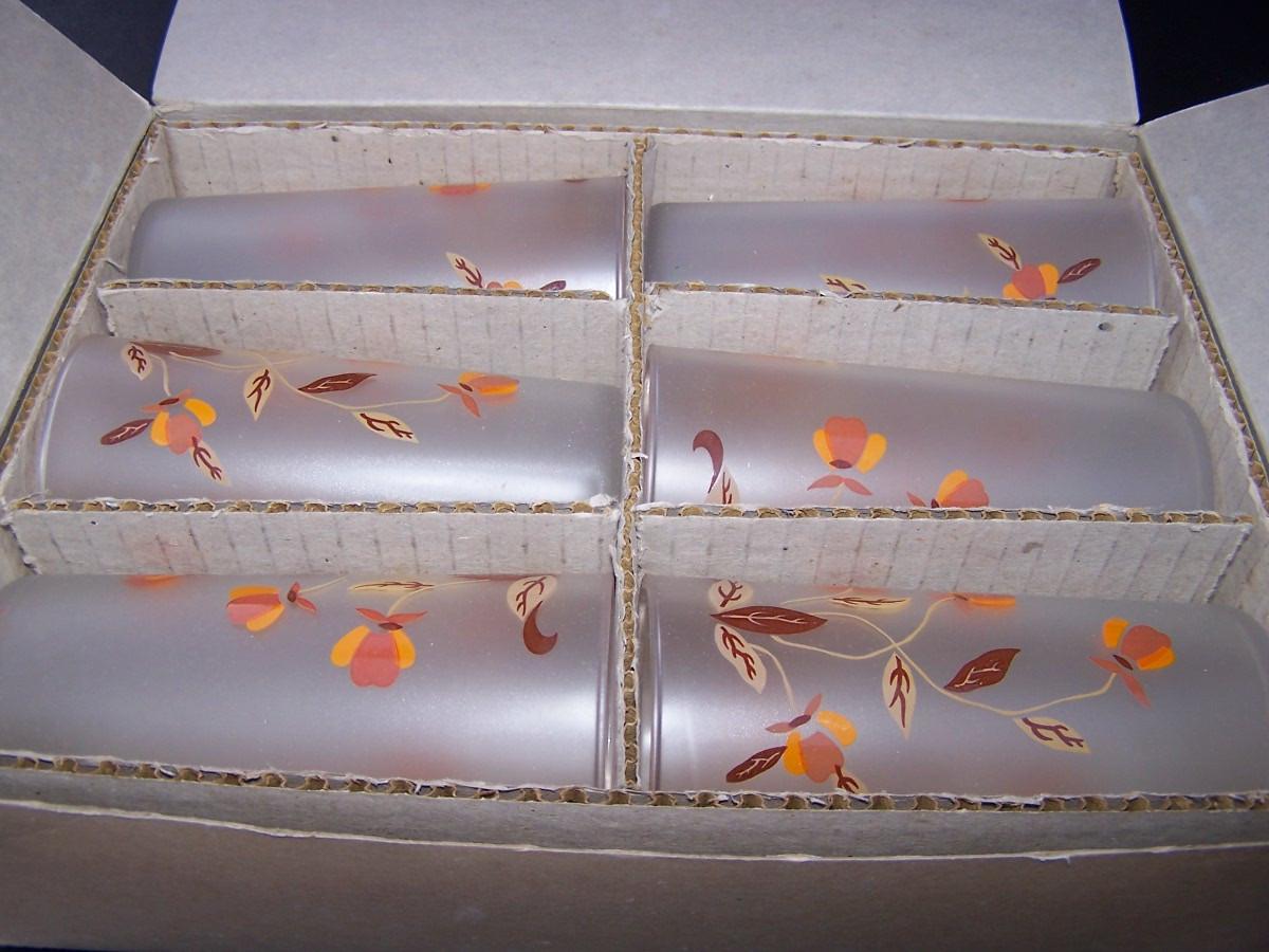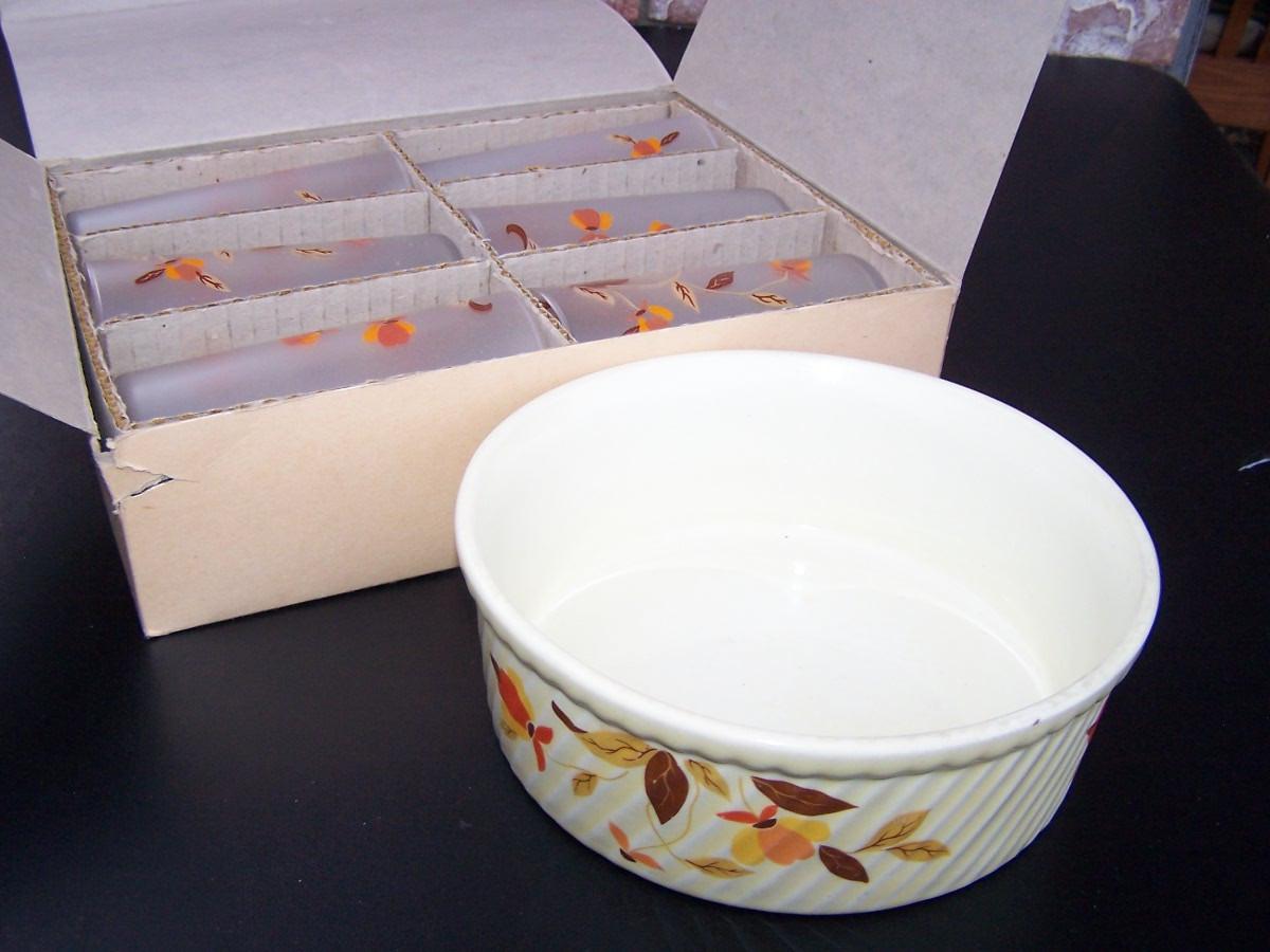 WONDERFUL VINTAGE JEWEL TEA CASSEROLE DISH & GLASSWARE in BOX... CASSEROLE HAS SOME LIGHT WEAR, AND THE GLASSWARE HAS SOME VERY SLIGHT WEAR...