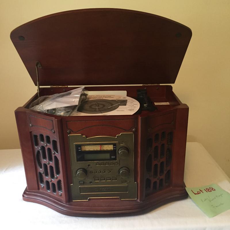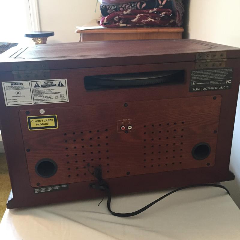 Wooden Music Center has CD Recorder Turntable and Cassette Player With AM FM Radio