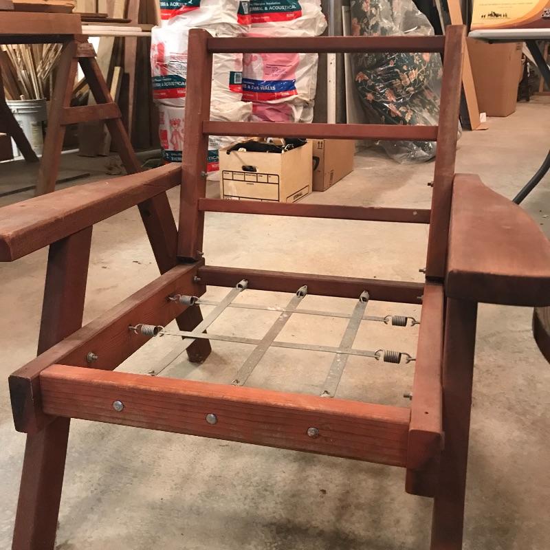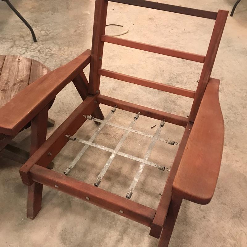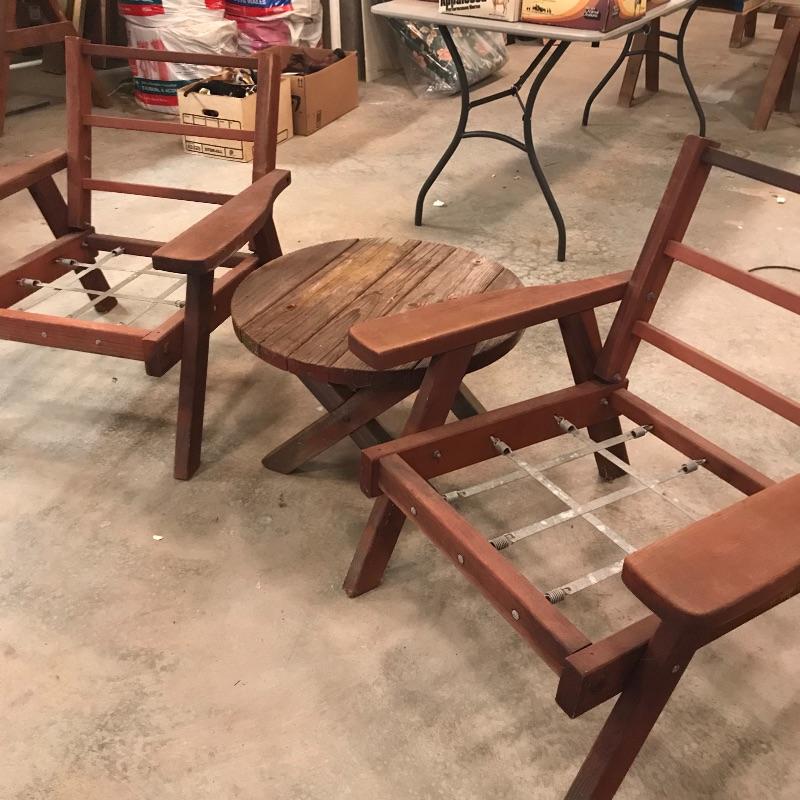 This classic set is ready for springtime porch lounging. With cushions of your choice, this furniture will adapt to most any style. Chairs are esch approx. 30” x 26” x 29” h. See pics. Local pickup only.