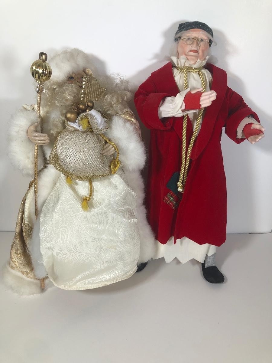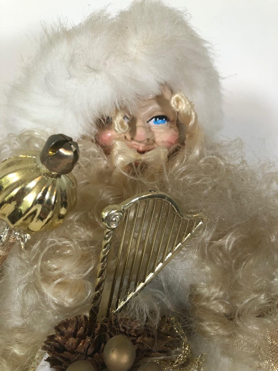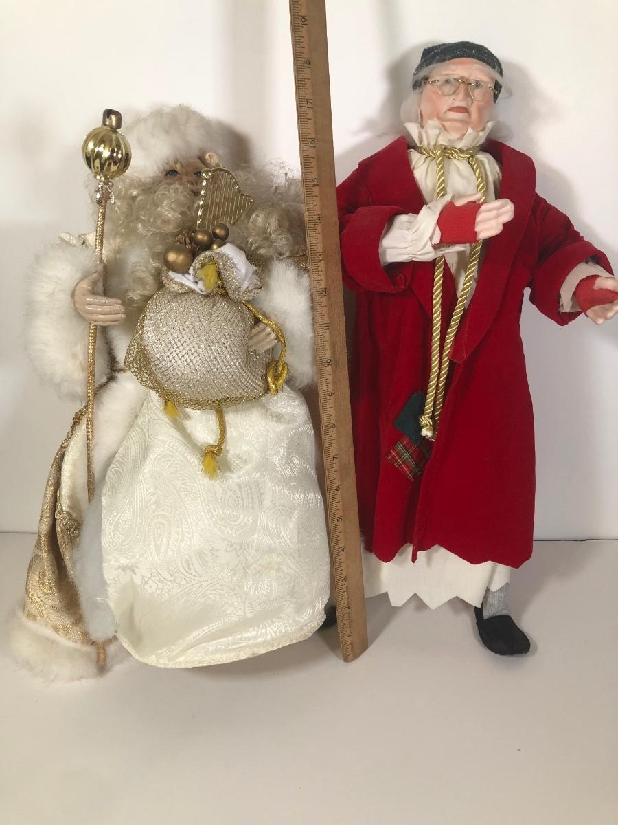 LOT 188D: Vintage Christmas Decor - Dept 56 Scrooge Doll & Gold/White Terry's Village Santa Tree Topper