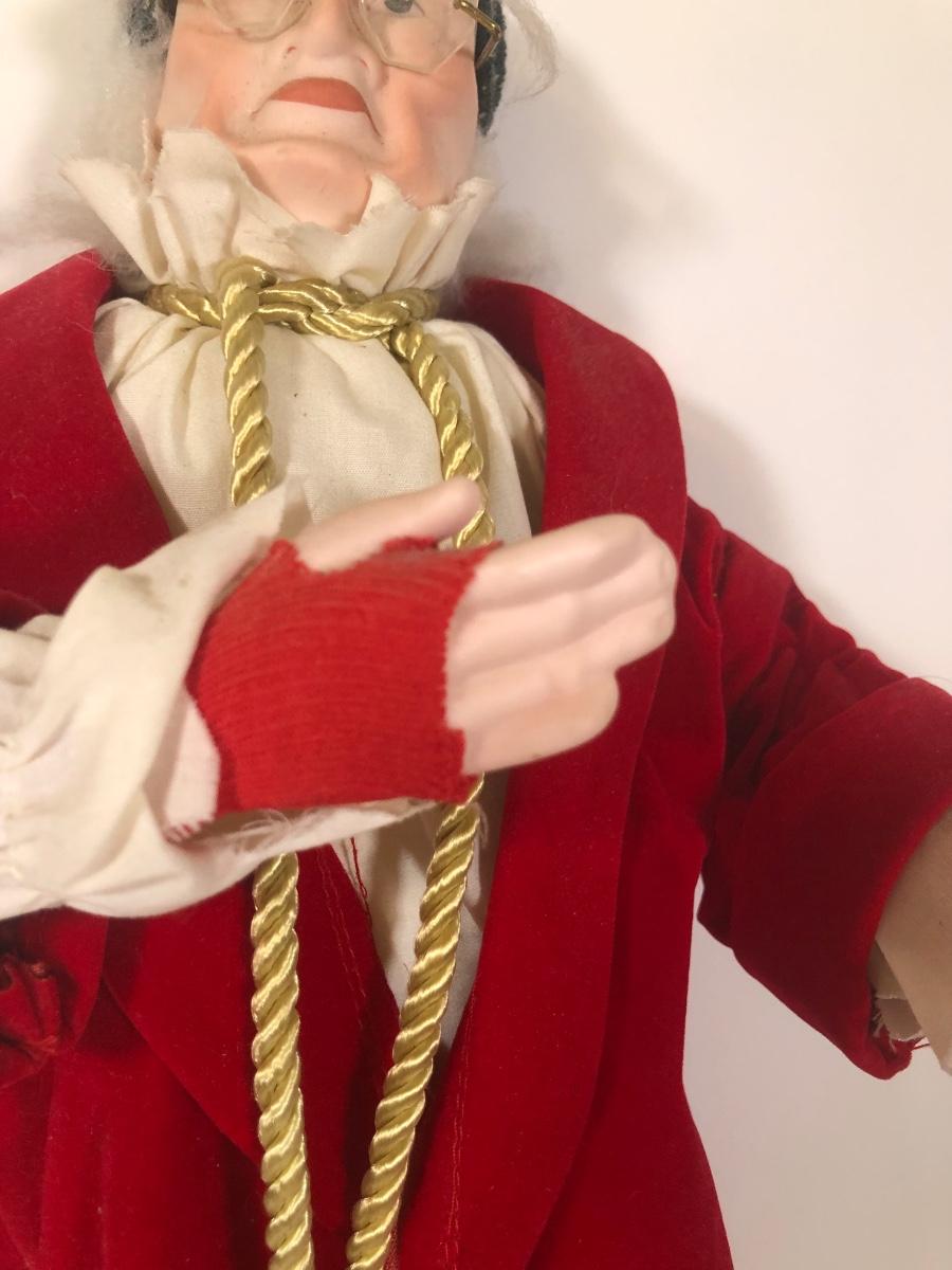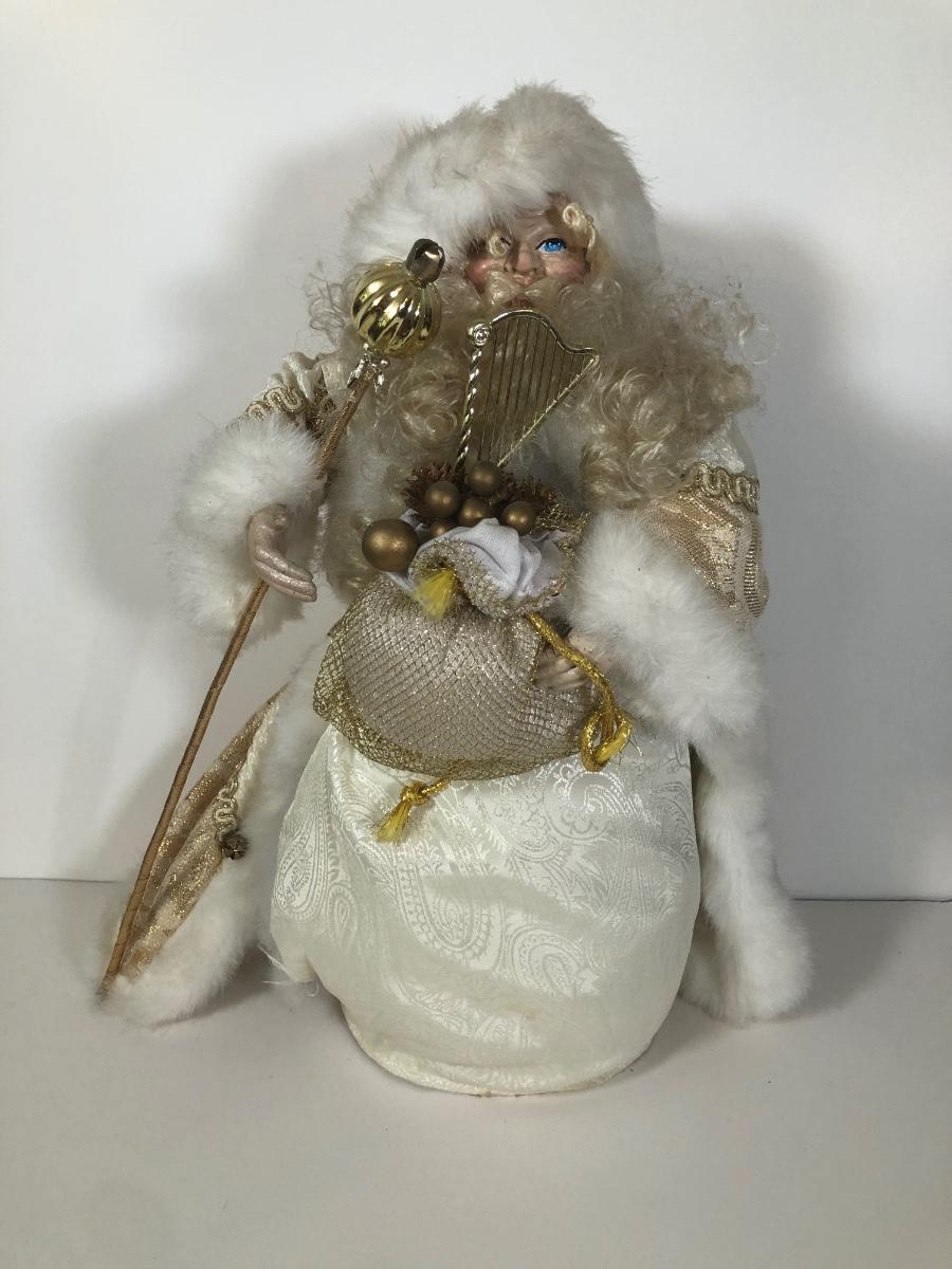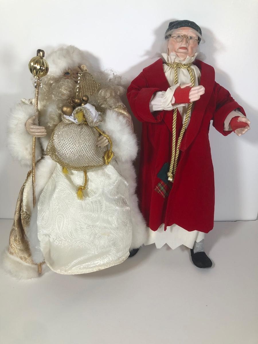 LOT 188D: Vintage Christmas Decor - Dept 56 Scrooge Doll & Gold/White Terry's Village Santa Tree Topper