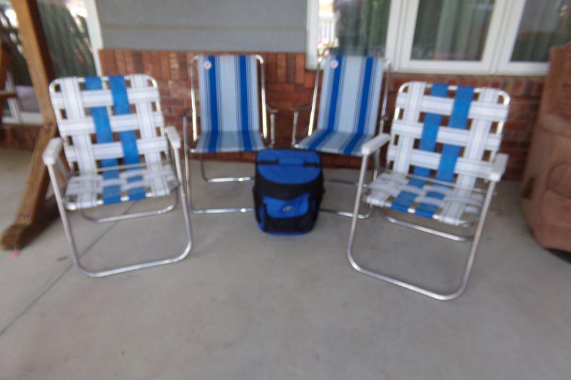 4 LAWN CHAIRS AND A SOFT SIDED COOLER