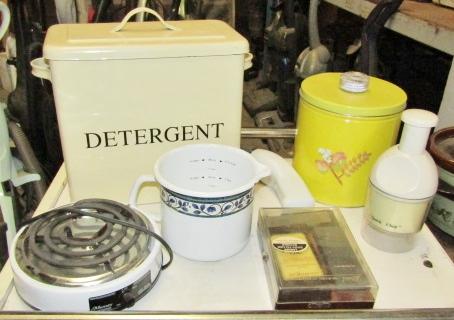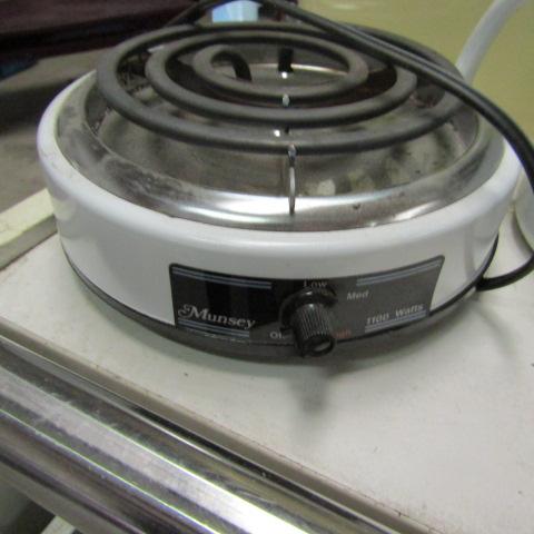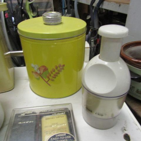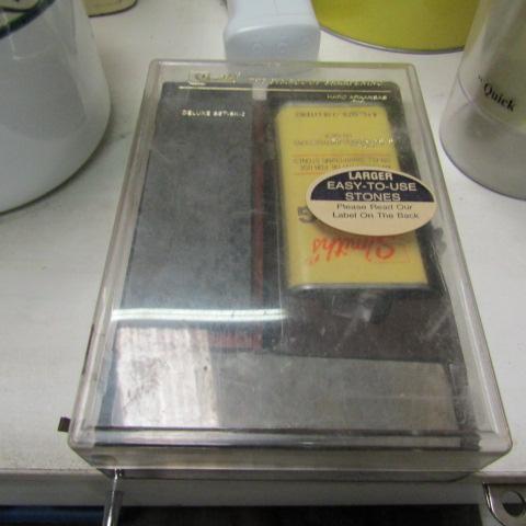ELECTRIC HOT PLATE, MEASURING BOWL WITH SPOUT, KNIFE SHARPENING KIT, CHOPPER, CANISTER & CASE OF NEW LIBBY GLASSES 24 COUNT