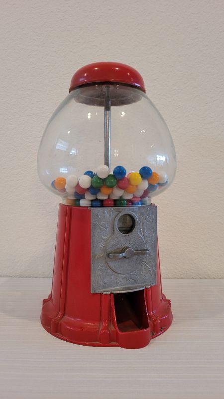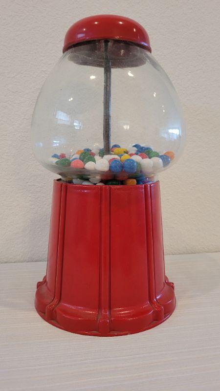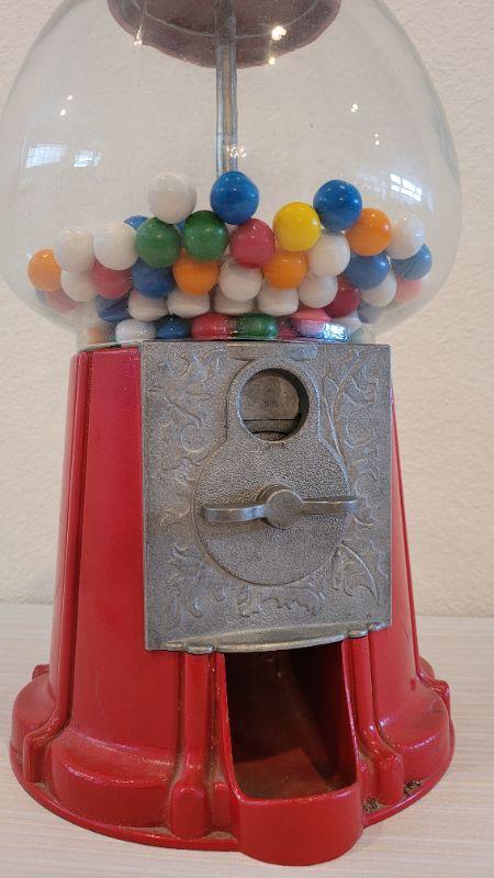 Lot 189: Vintage Heavy Glass Dome Candy Machine (no key) 8" x 15"