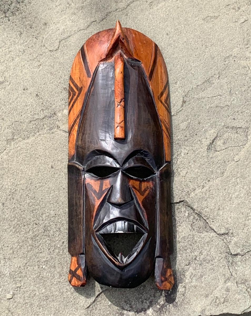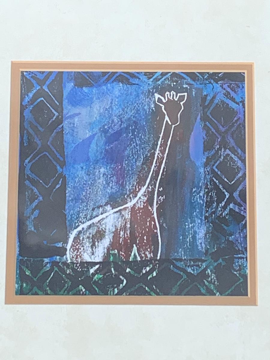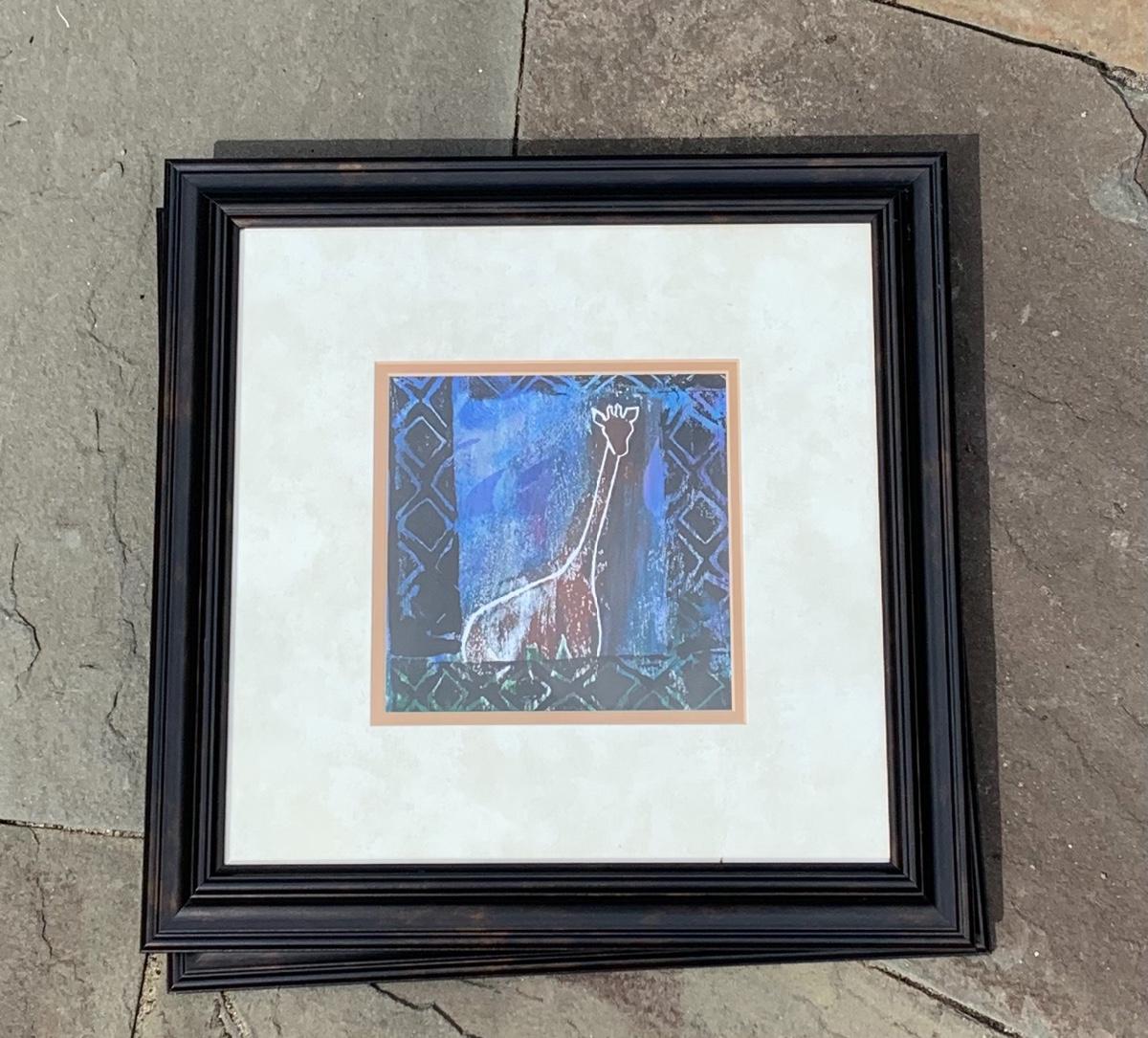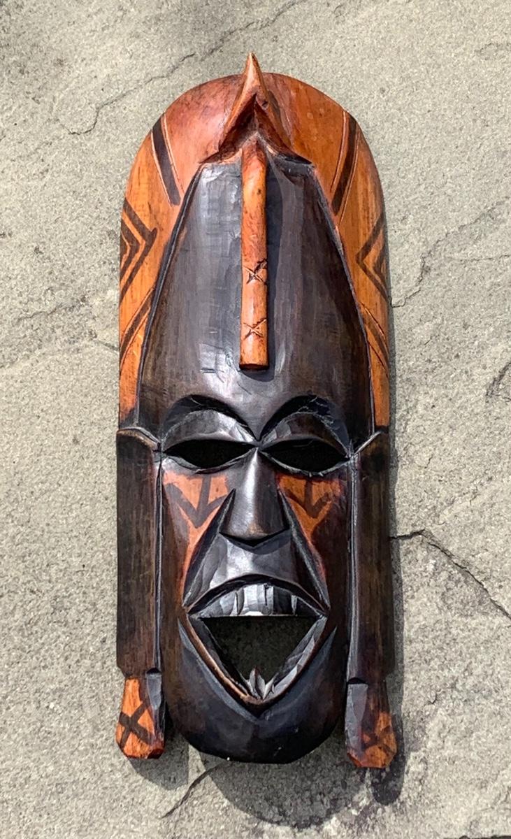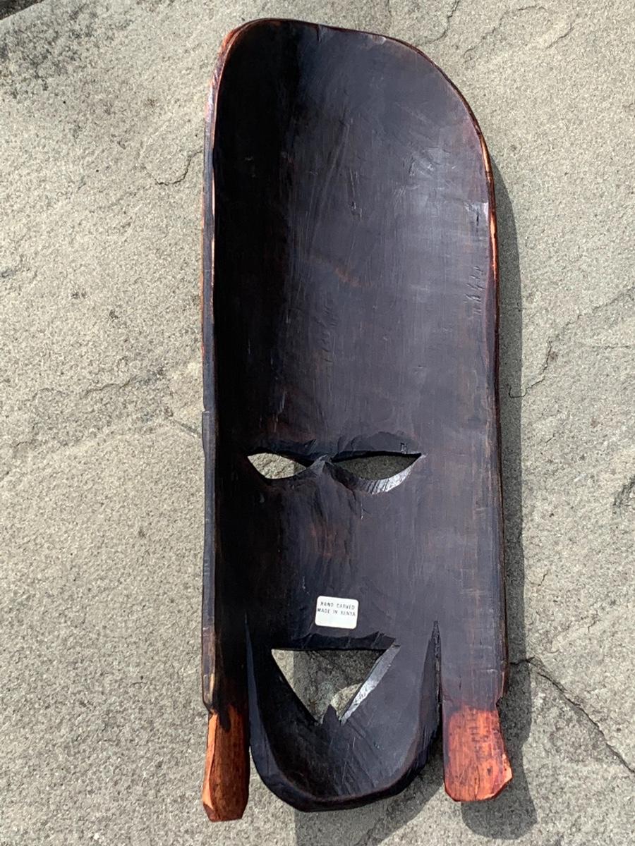 Hand carved tribal mask, Kenya along with framed 17 x 17 animal prints