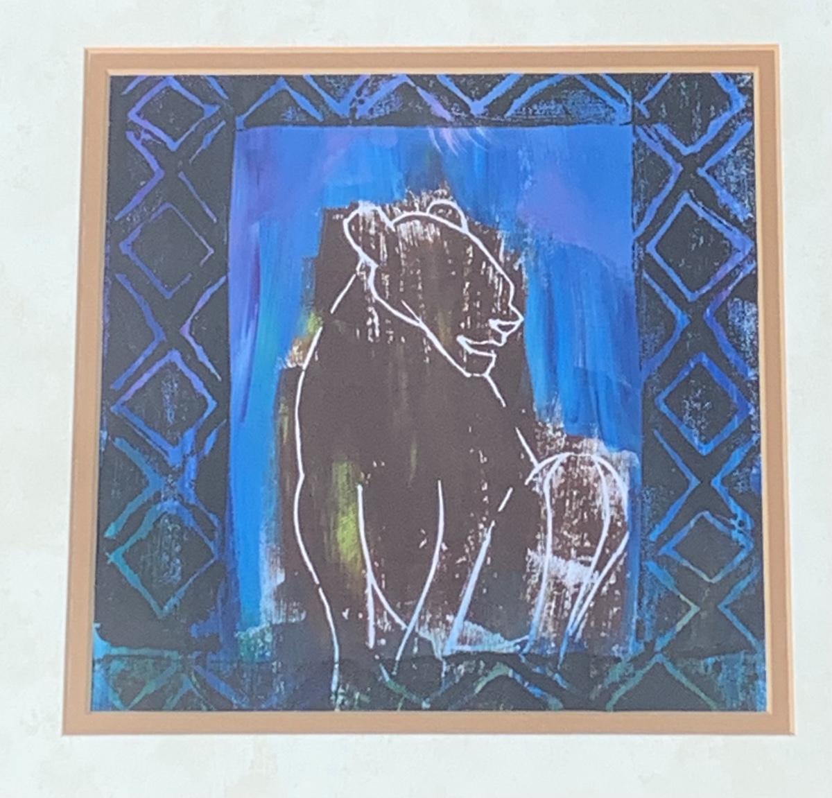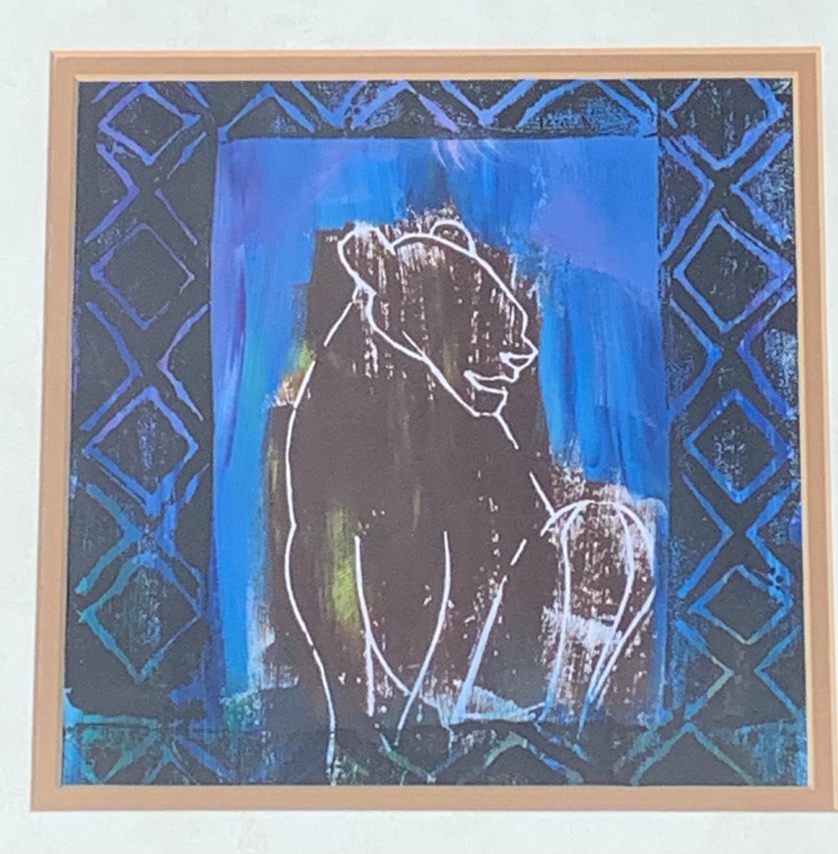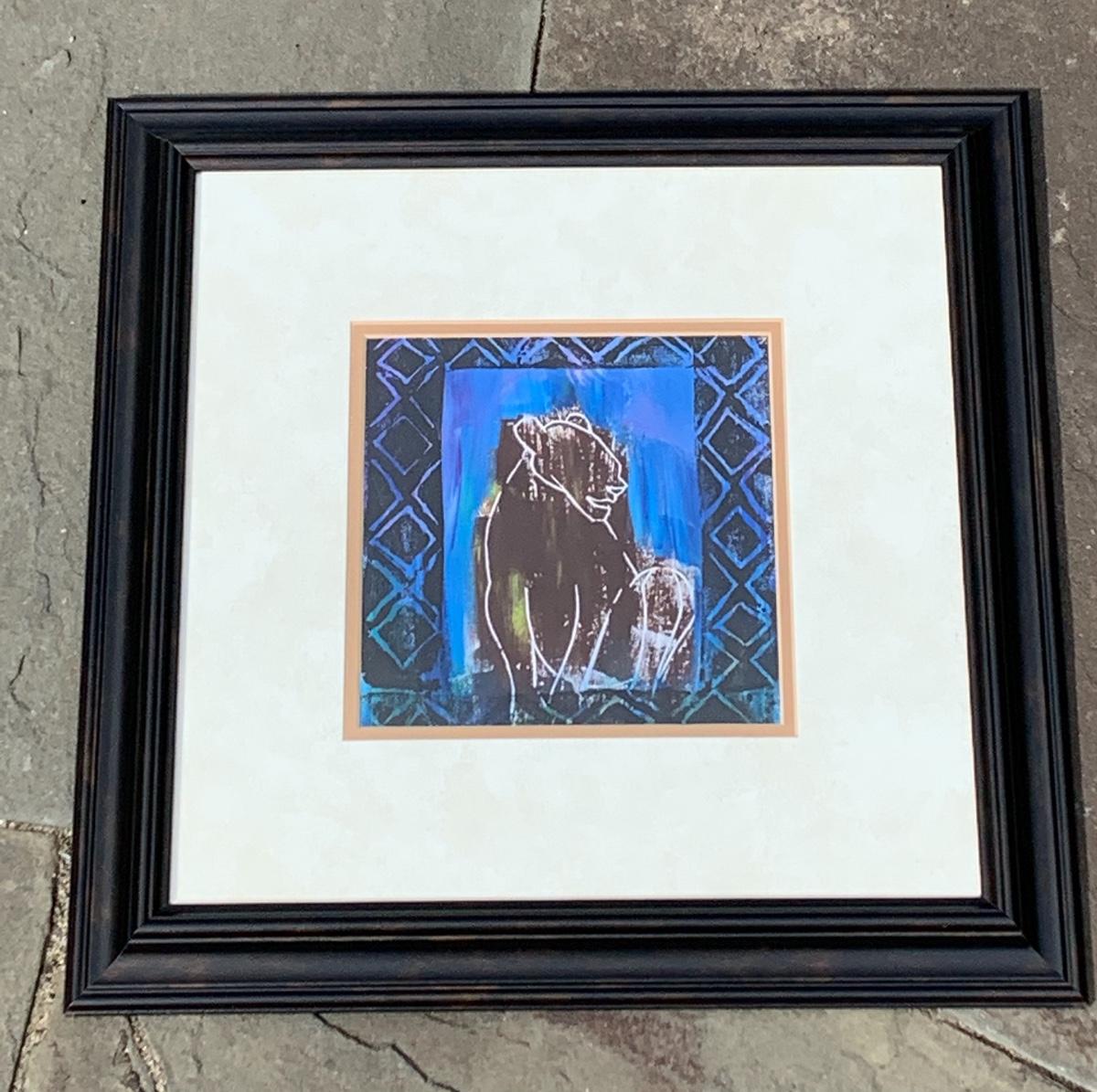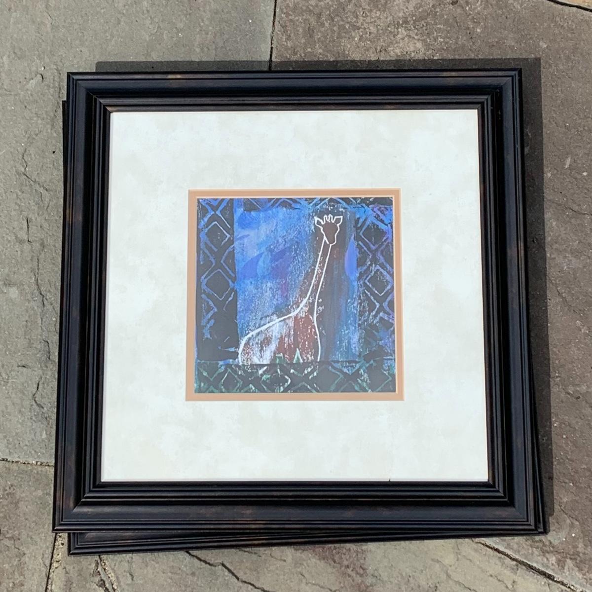 Hand carved tribal mask, Kenya along with framed 17 x 17 animal prints