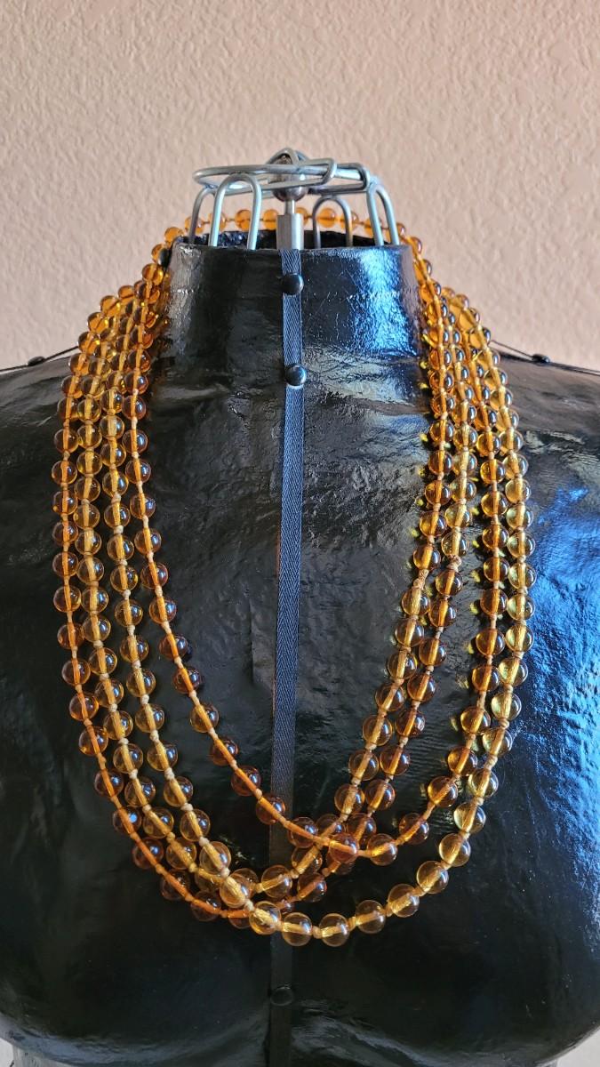 Lot 189: Vintage 108" long Glass Amber Bead Necklace