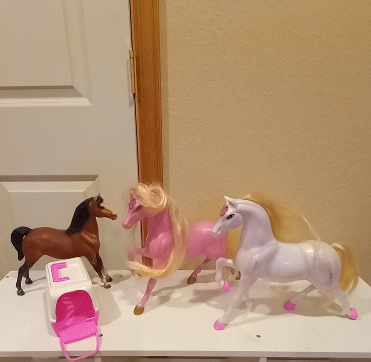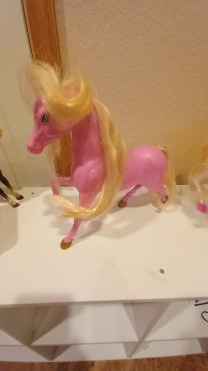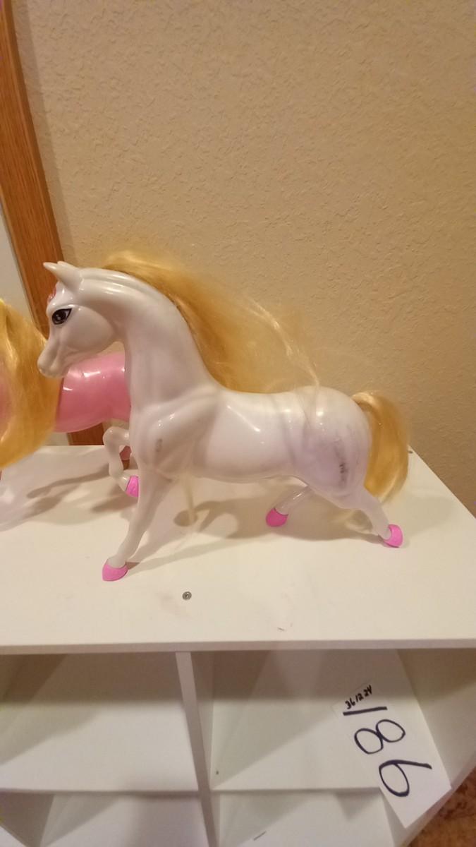 THE WHITE AND PINK HORSES MAKE NOISES WHEN YOU PRESS THE HEART ON THEIR HEAD