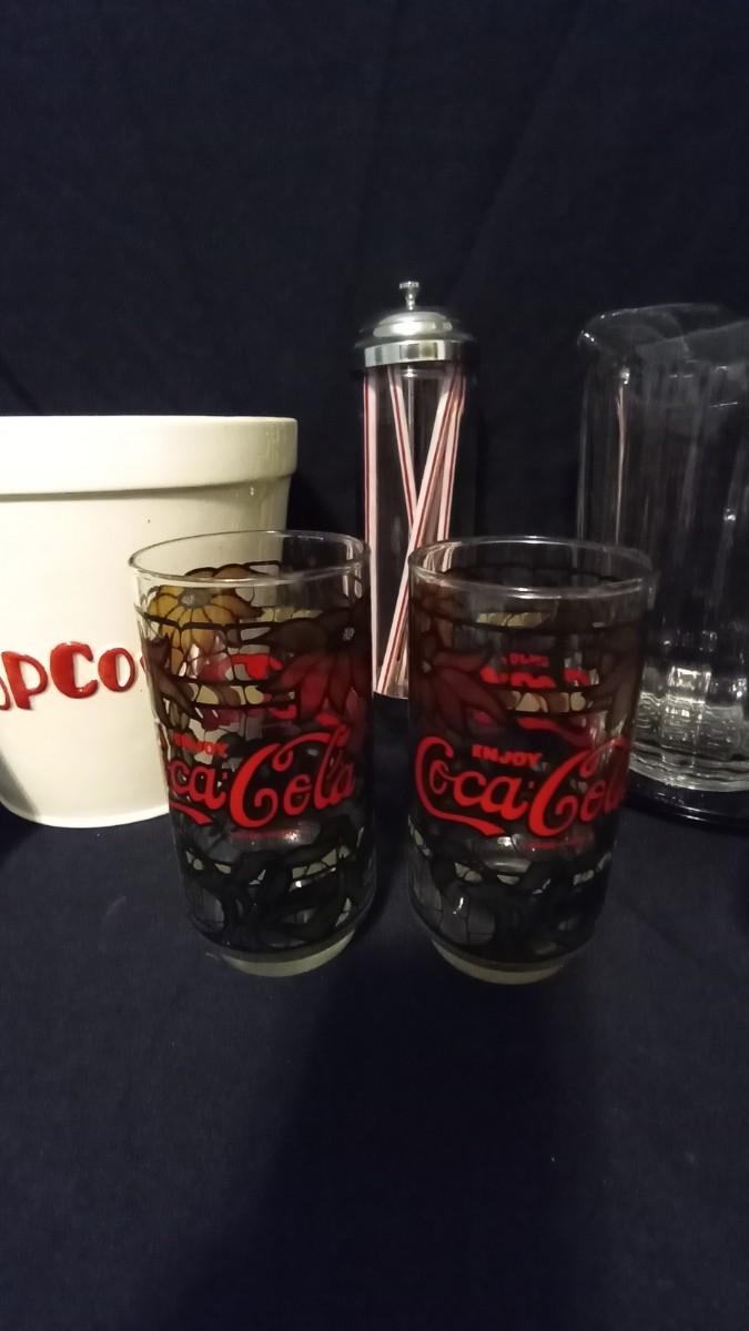 CERAMIC POPCORN BUCKET-VINTAGE COKE GLASSES-STRAW HOLDER-GLASS COSTERS MORE