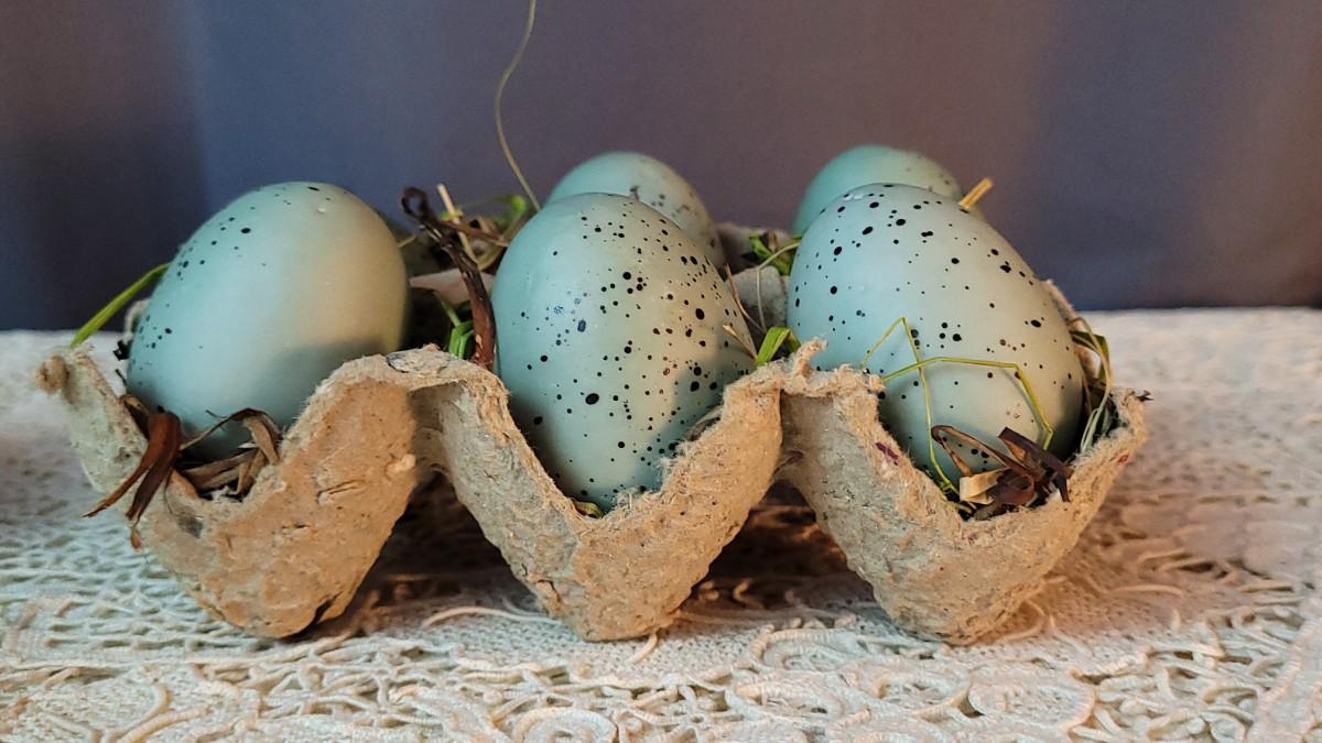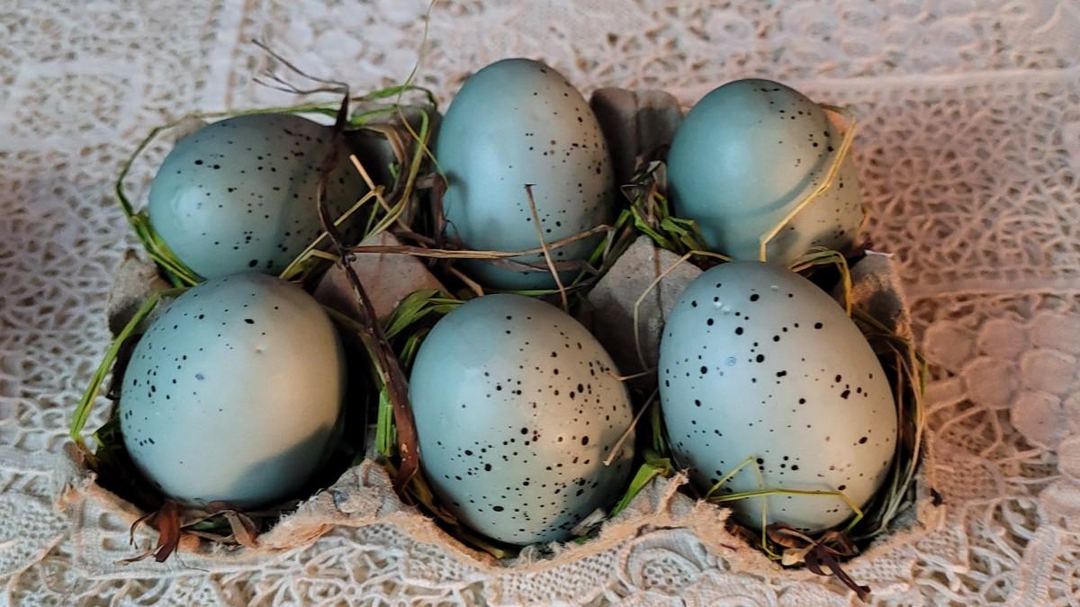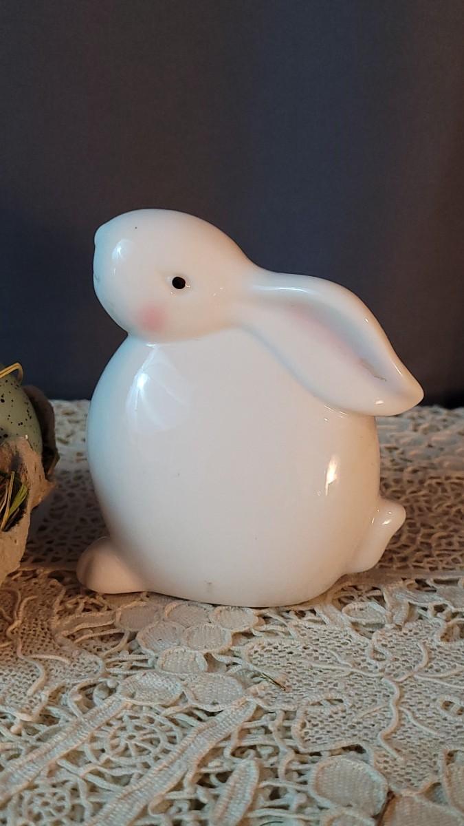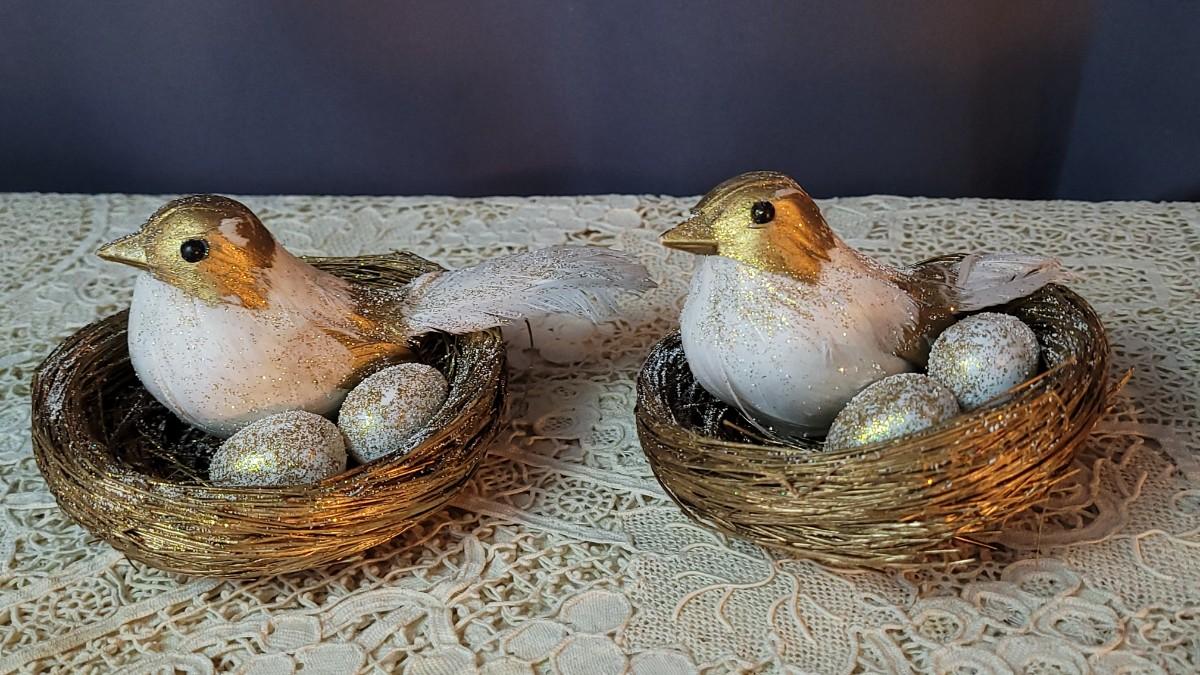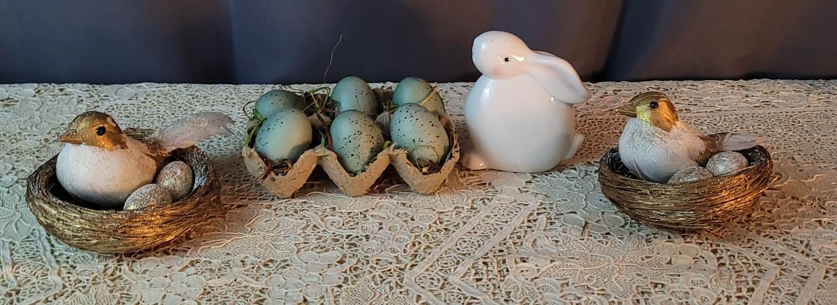 Lot 189: Small Porcelain Bunny, Speckled Eggs and (2) Birds in Nests