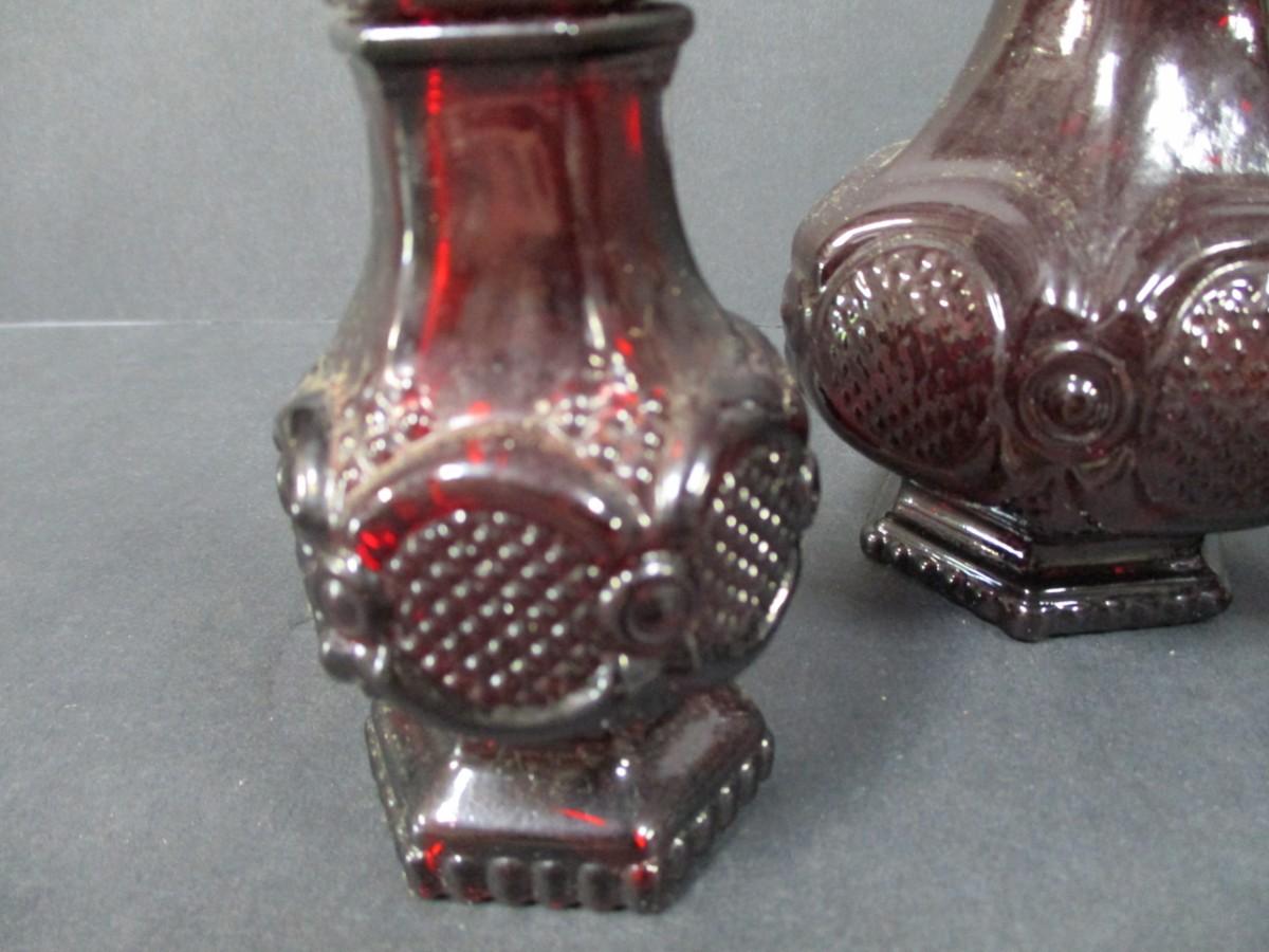Lot 189 - Cape Cod Ruby Red Avon Cruet w/ Stopper & S&P Shakers