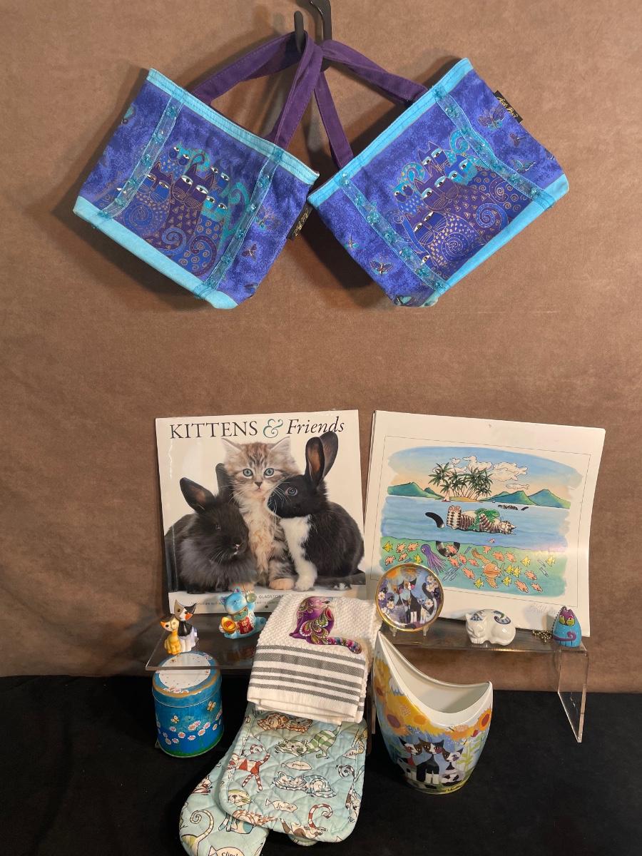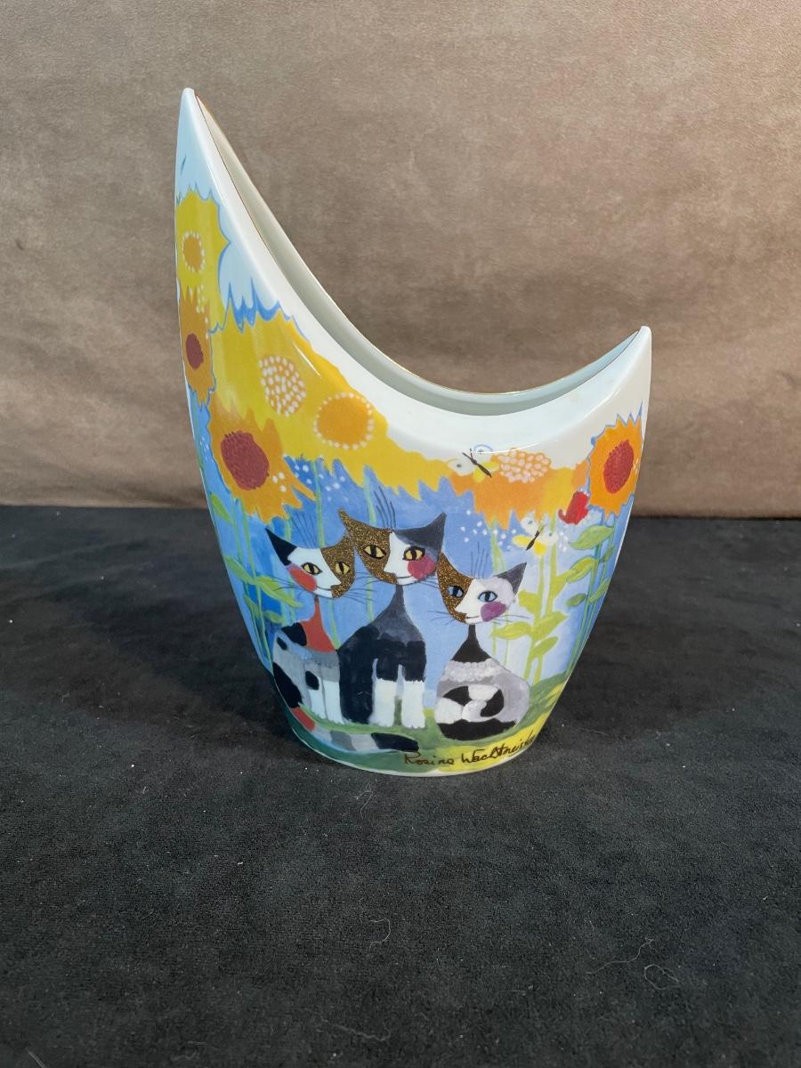 Rosina Wachtmeister artist for Goebel ; cat figurine, vase and pin dish